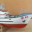 Корпус и надстройка изготовлены из стеклопластика выклеиванием. Деталировка из пластика, листовой латуни и поволоки. Модель построена в судомодельном кружке СЮТ г. Шахты для участия в соревновании в классе Ф2Ю. На изготовление модели ушло почти 2 учебных года.