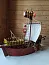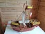При изготовлении использовались различные виды картона и бумаги. Основные детали выполнялись из гофрокартона со сборкой на термоклее. Парус и флаги из ткани. Покрытие акриловыми красками и лаком.