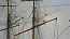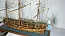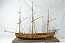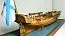 Размеры модели с рангоутом - длина от нока бушприта до нока бизань-гика 1280 мм, ширина по грота-рею 500 мм и высота до клотика грот-мачты 870 мм.