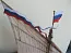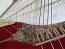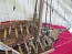 Паруса тоже из хлопковой ткани – имеют нашивки отдельных полос и риф-банты. Имеют также риф-сезни, пришитые ликтросы и кренгельсы из ниток. Такелаж – из нитки в двух цветов и 9 разных диаметров. Сделаны клеванты на соответствущих канатов для быстрое разделение их концов.