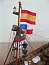 на мачте навешены шелковые флаги Испании и провинция Барселона и флаги Болгарии и города Каварна (посколько модель пребывает все время в Болгарии и является на Чемпионате Болгарии в городе Каварна)
