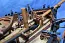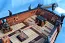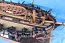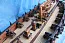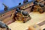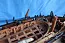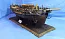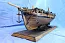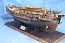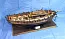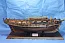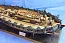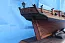 Лафеты выполнены с максимальной деталировкой и каждый состоит из 56 отдельных деталей. Шлюпка на рострах изготовлена из груши. Кормовой фонарь спаян из меди и зачернен, остекление – слюда, внутри показана свеча. Цепь сорлиня изготовлена самостоятельно из медной проволоки с последующим чернением.