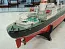 Длина: - 595мм Ширина: - 78мм Высота борта: - 47мм Осадка: - 34мм Модель изготовлена по чертежам журнала «Моделист-конструктор» в масштабе М1:285. Выполнена по классической технологии. Корпус из стеклопластика. Палуба и грузовые люки из фольгированного текстолита. Надстройка паяная из жести. Деталировка из разнообразных подходящих материалов – латуни, медной и стольной проволоки, пластика. Окрашена нитрокрасками. Модель ходовая, изготавливалась для соревнований в классе ЕН-600.