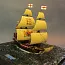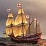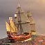 Окраска кисточкой. Краски акриловые Звезда и Акан, + эмаль Тамия (золото), и Revell (латунь). Паруса краска Ганза Н85 Sail color очень понравился их цвет парусины. Травленные ванты окрашены черной краской из баллончика. Палуба и дерево цветные лаки Акан под дерево: тик, светлый дуб и др.