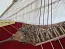 Такелаж – из нитки в двух цветов и 9 разных диаметров. Сделаны клеванты на соответствущих канатов для быстрое разделение их концов.