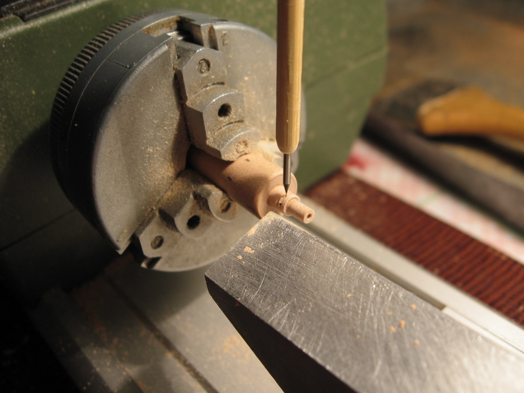 А если серьезно, нужно просто немного потренироваться и можно вставить сверло 0,4мм и даже 0,25мм, к примеру, в зубочистку и без токарника. Просто просверлить зубочистку вдоль по оси сверлом. Зажать сверло плоскогубцами и крутить пальцами зубочистку. Потом сверло вклеить секундным клеем, перевернув, конечно. При определенном навыке удается практически избежать несоосности.