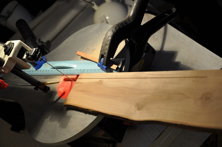 Пришла сегодня нужда отпилить пару палочек.Циркулярка далековато ,лезть лень,а Лобзик рядом,да и весит по менее.Пилить нужно было ровно ,без выкрутасов,а общее мнение гласит,что даже с направляющей,все попытки обречены на провал,рез будет уводить.Но лень ,товарищи,большой двигатель прогресса.Обычная линейка и пара струбцин,что еще надо для прямого реза.Досочка 10ка яблоня.Все остальное на фото.Оказывается можно и лобзиком!!!!Напоминаю,налет часов на станках любого класса у меня мизерный,т.е. пара палок.По жизни "умеренный индеец",но гвозди забивать иногда получается.Станок радует,чего еще желать!