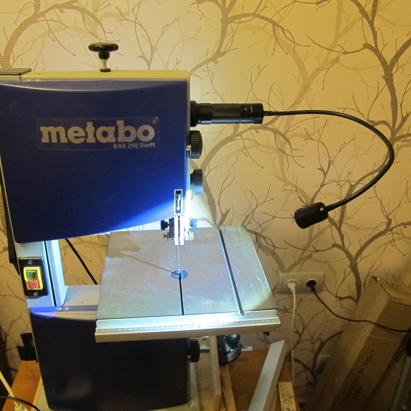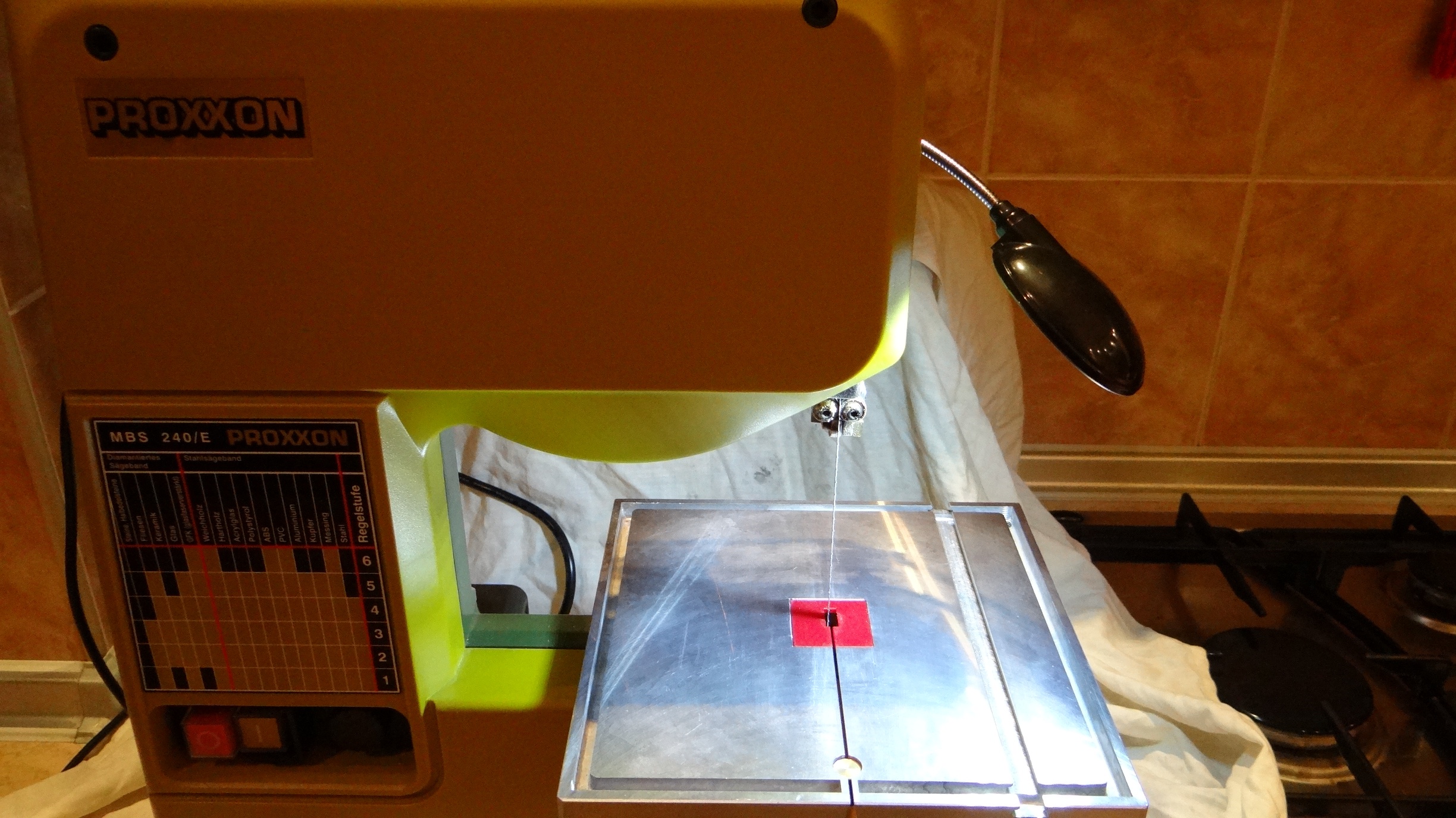 Пытаюсь творить на кухне и поэтому свет на рабочее место падает строго вертикально, для циркулярок это нормально, но для фрезера и "ленточки" - это горе, тень падает прямо на место обработки, установка рядом фонарика - не помогает, он светит в глаза, а не на заготовку. Очень печалит забота Проксона - о нас, можно было изначально пару мощных светодиодов вмонтировать.