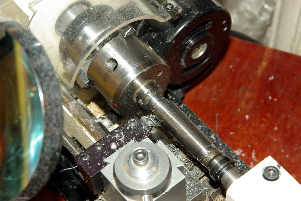 Сделал оправку под купленные цанги "Малыш" еще раз подтвердил свою состоятельность, биение на оправке 0,01-0,015мм, не более, на конусной посадке цанги так же. Убедился в полезности нарезания резьбы станком, можно нарезать любую произвольную (по диаметру) резьбу. Завтра предстоит очередная задача:- изготовление накидной гайки с нарезкой внутренней резьбы М19,5х1