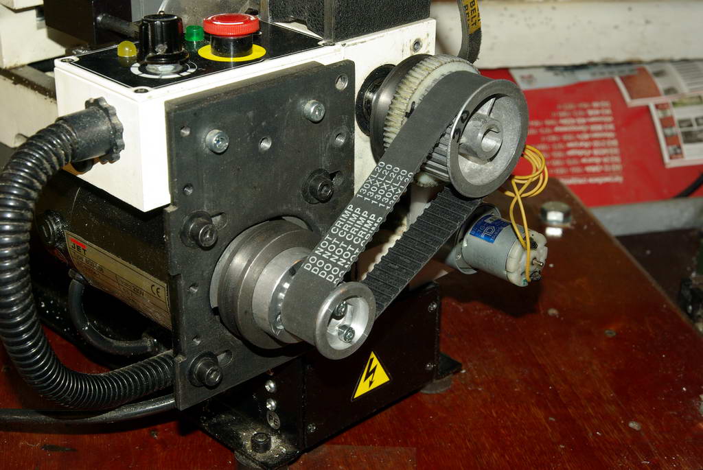 Поставил "Ребировский" комплект на свой станочек Родные шкивы оставил вместе с шестерней привода "гитары", что-бы не переделывать конструкцию. Поход на "барахолку" особо ничего не дал, заставил только лишний раз подивиться нашим ценообразованием. Я брал свой комплект за 390руб в сервисном центре: ведущий шкив-60руб, ведомый-80, ремень-250руб. "Сервис-мен" еще посетовал, что ремень подорожал. На рынке за такой-же комплект просили 1000руб: 500руб-комплект шкивов и 500руб за ремень