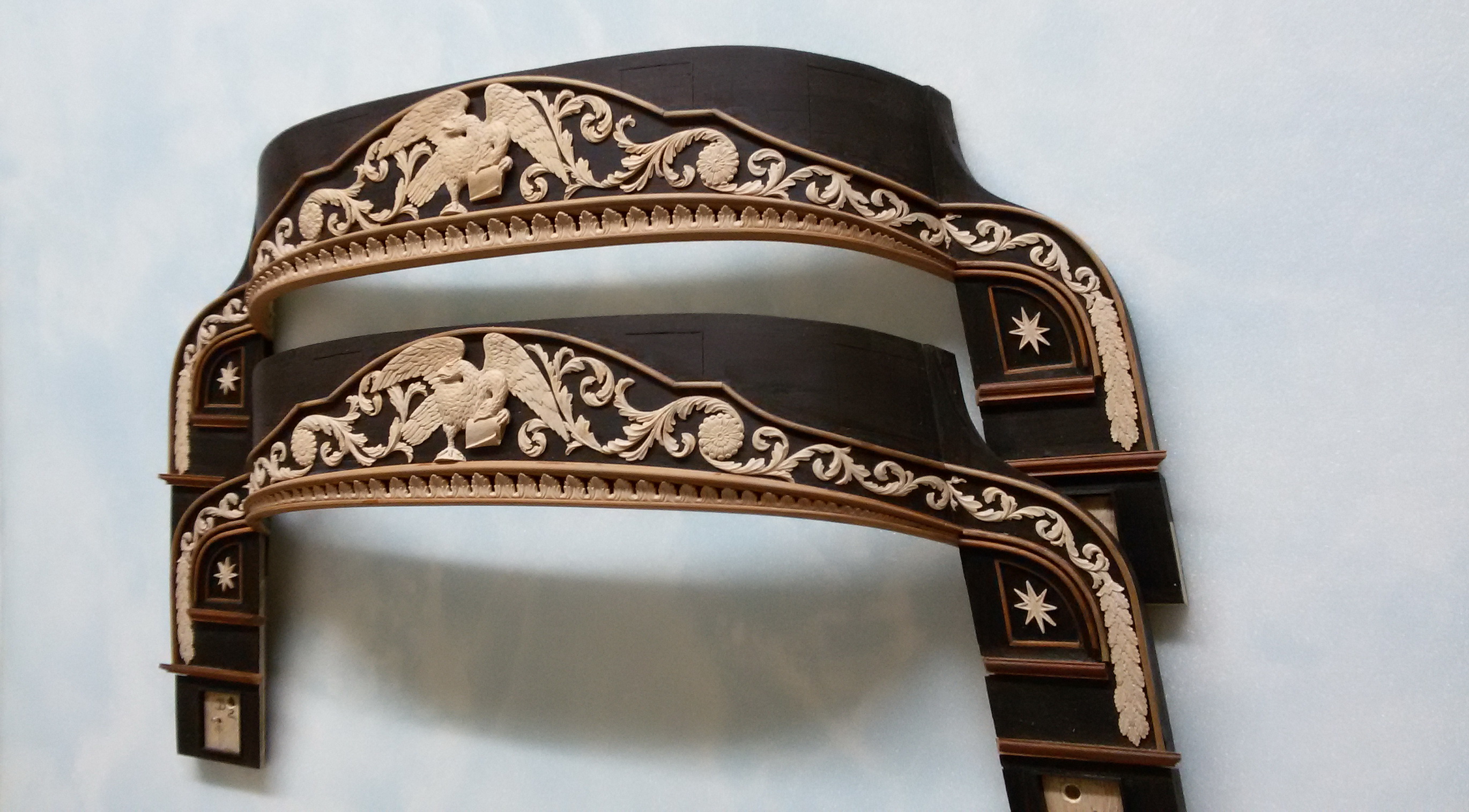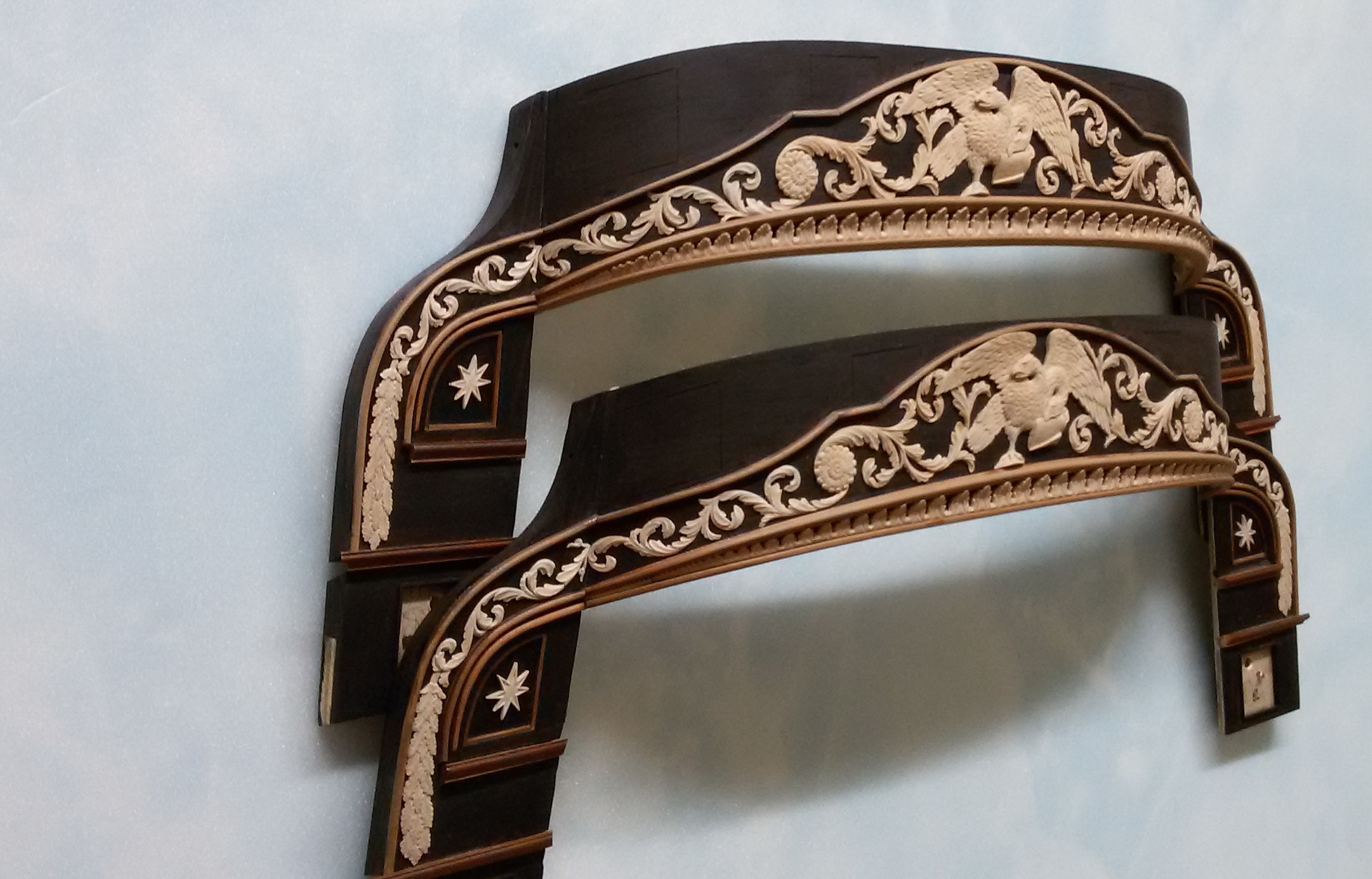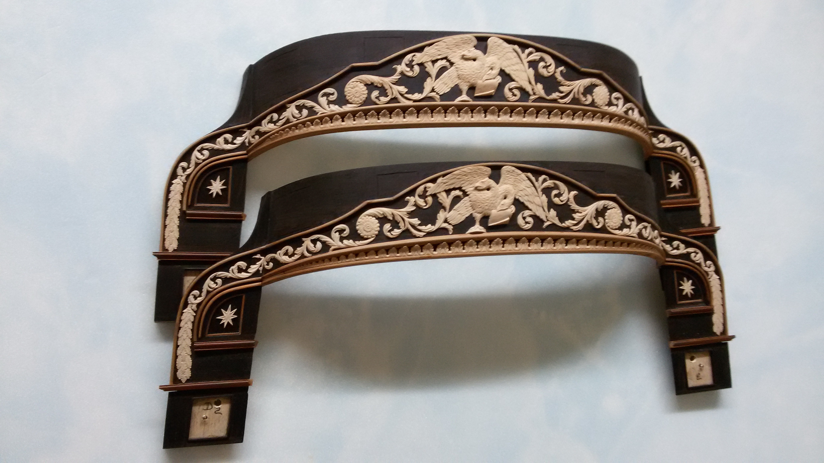 Очевидно, что на реальных кораблях декором занимались профессионалы и декор соответсвовал своему определению , а вот то что в музеях и частных коллекциях на моделях хорошего качества зачастую откровенно слабый декор можно объяснить тем, что мастера, в силу разных причин, не обращались к профессиональным резчикам и пытались украшать модели сами, а заказчики моделей или музеи, опять же в силу разных причин, не обращали внимание или закрывали на это глаза. И второй момент. На чертежах часто встречаются плохие, не проработанные рисунки декора. Предполагаю, что это могло допускаться с тем расчетом, что на верфи, при строителстве реального корабля, декор будет сделан профи. А вот когда рисунок декора попадает к моделисту, то тот ,чаще всего, просто старается его скопировать