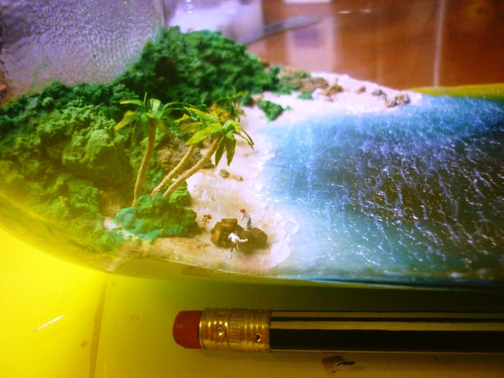Настало время помещать "Викторию" и "Тринидат" в соответствующую обстановку, т.е. создавать в бутылке пейзаж Малукских островов, море, берег, фауну.(сами кораблики покажу позже). Могу поделиться некоторым опытом.