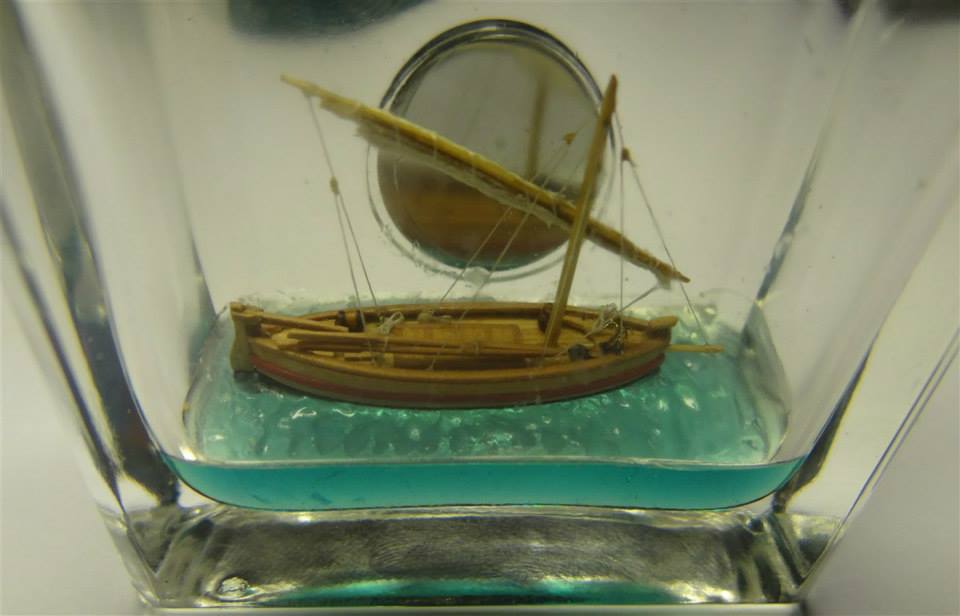 В одном из сообщений Кунец Владимир (на сайте fiord) делился опытом создания водной поверхности с помощью 3D геля. Сообщение его было очень коротенькое и практически затерялось среди обилия информации. Изготовить волнистую водную поверхность в бутылке, на которую впоследствии и установить модель кораблика представляется весьма интересным.