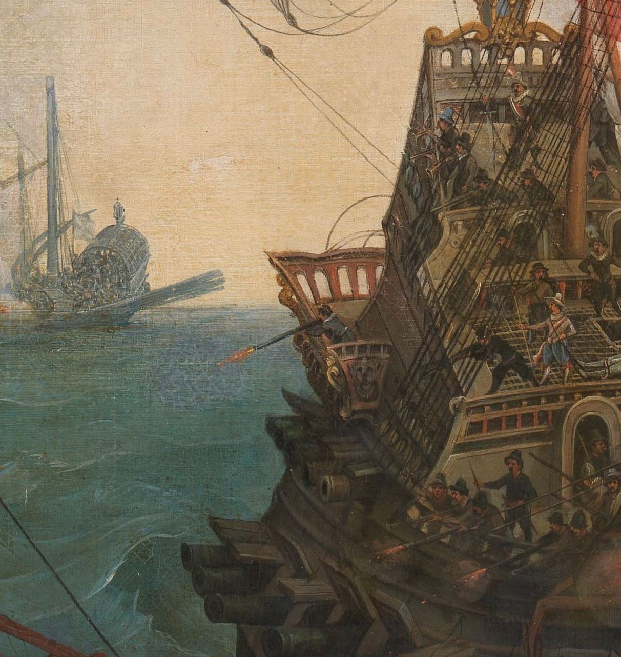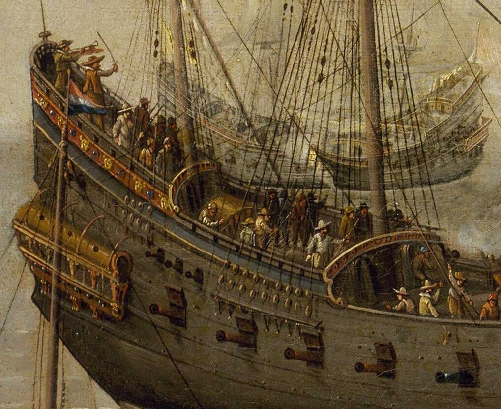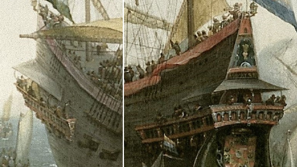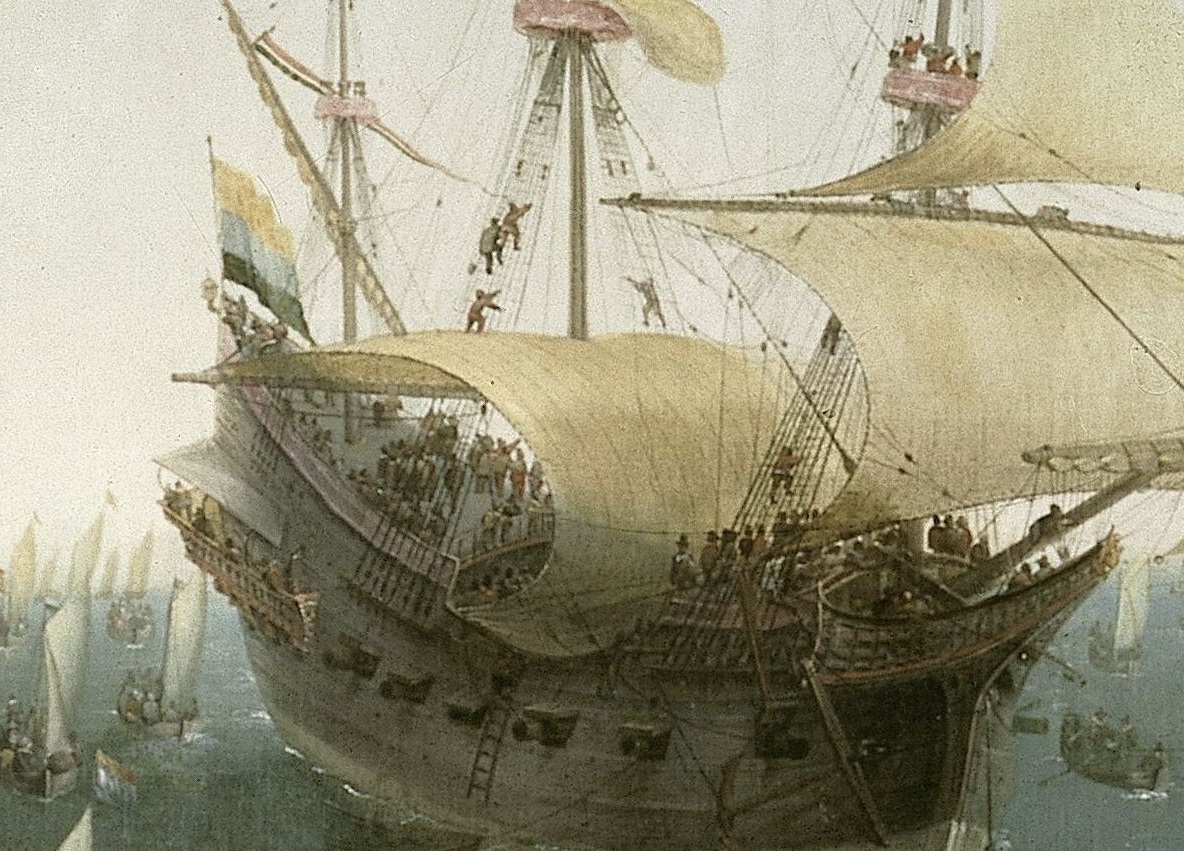 Я нашел только одно изображение 16 века, где мы можем видеть какие-то навесы на кормовой надстройке?