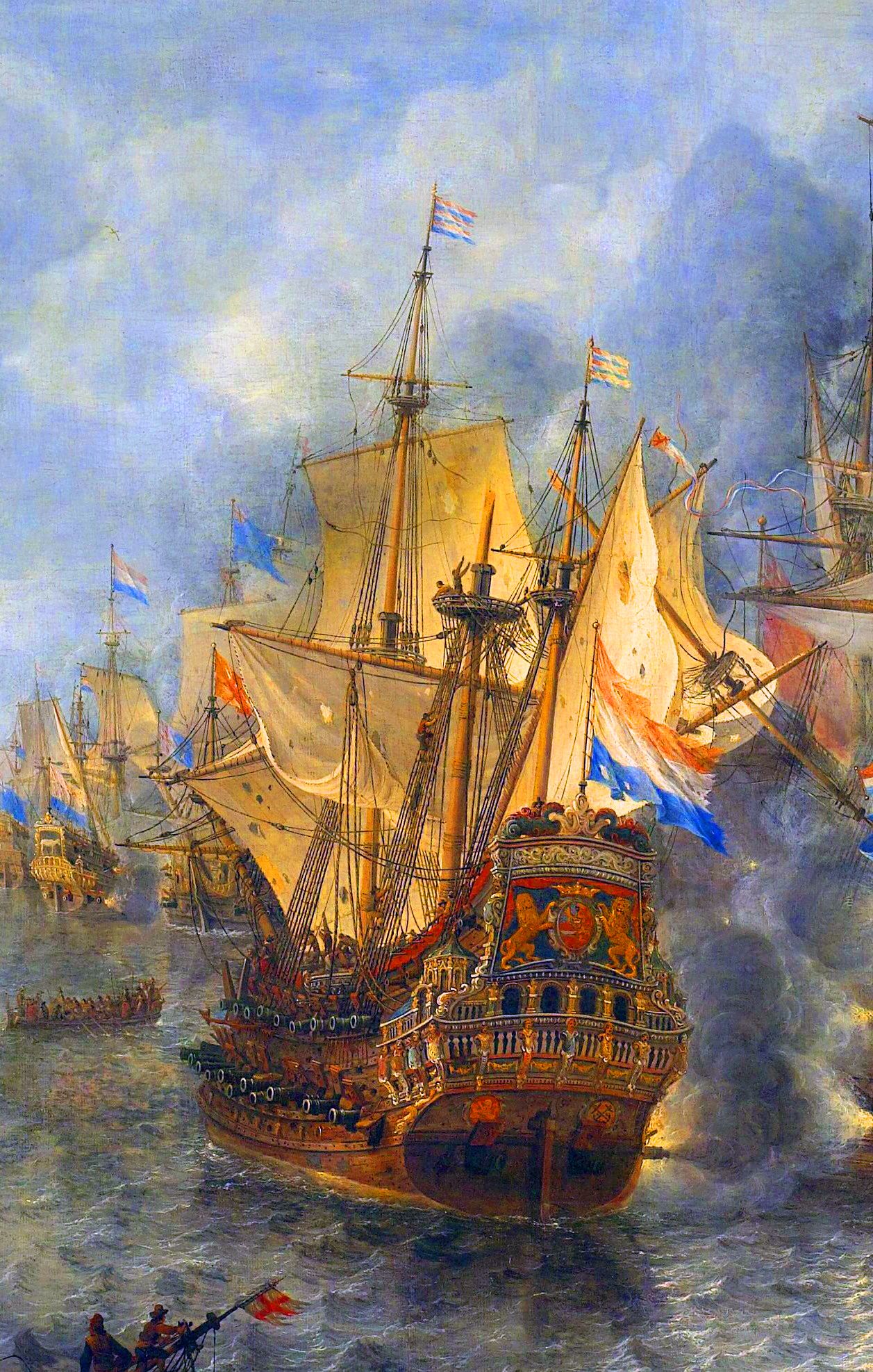 Также верный признак того времени - не красный а оранжевый цвет верхней полосы голландского флага.