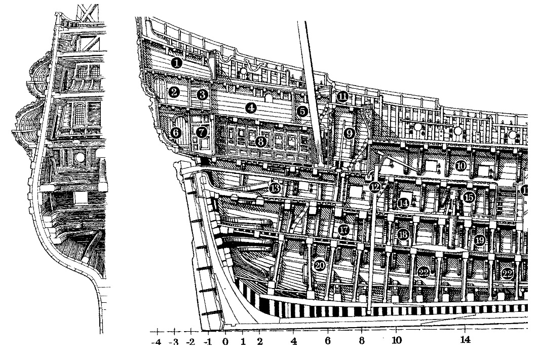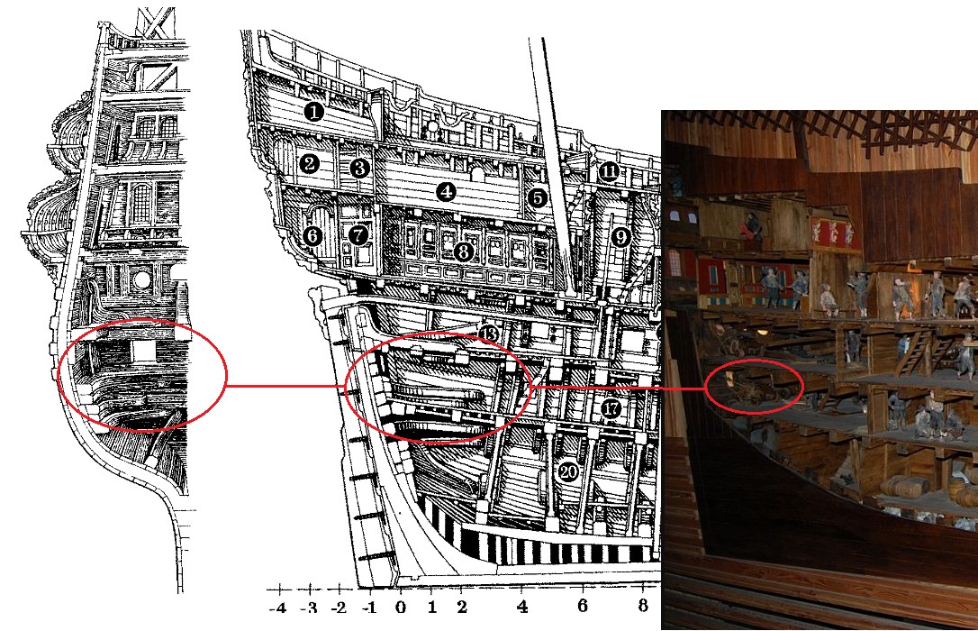 Миша, боюсь, у тебя не совсем надёжный источник по Васа. В "румпельной" находились ретирадные орудия, а сохранившиеся ретирадные пушечные порты наблюдаются и по сей день. Кстати, на твоей картинке они тоже есть.