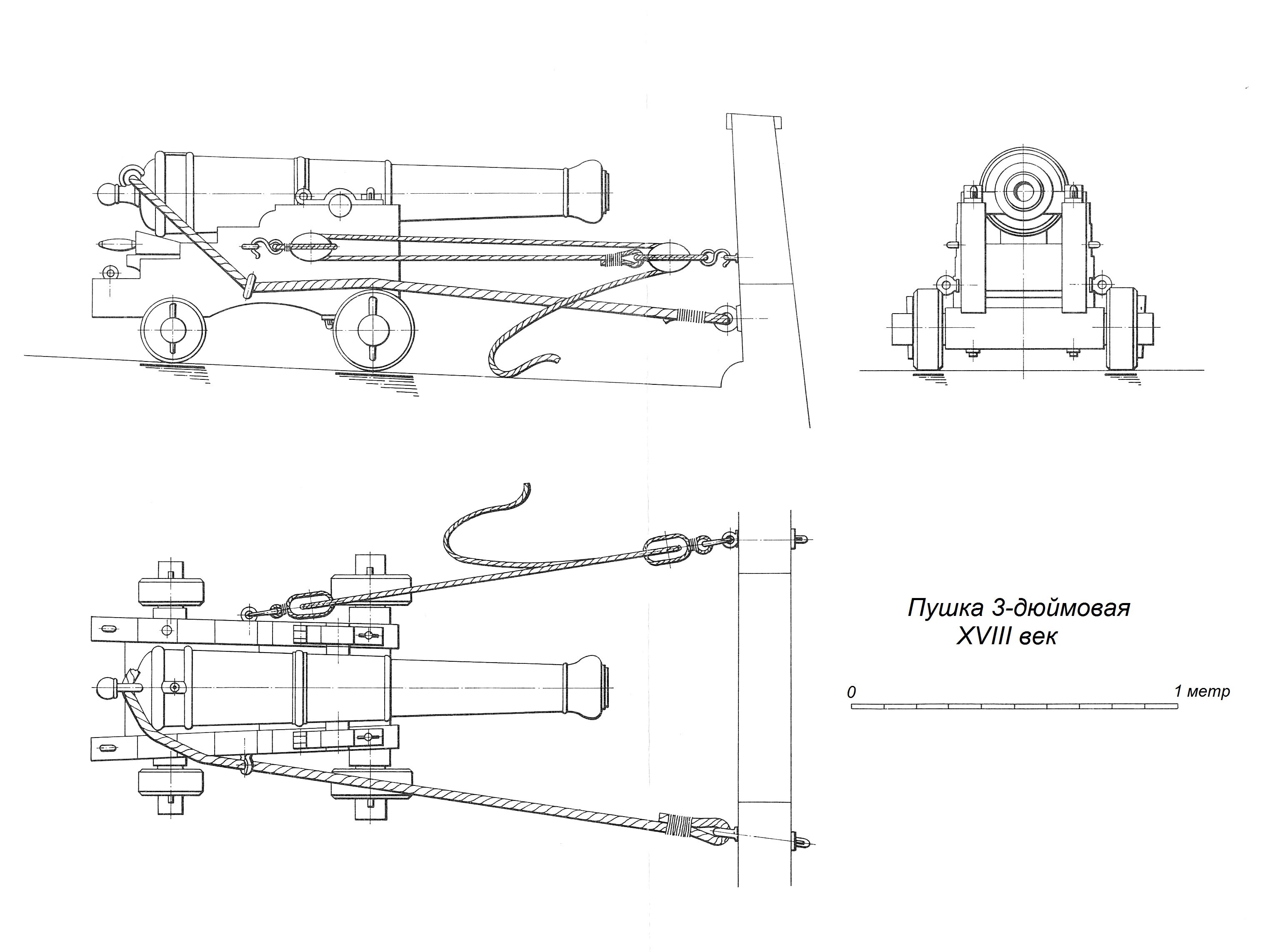 Именно так! Круглые амбразуры в районе румпельного отделения, если верить модели, тоже для лафетных орудий, но классические порты находятся на уровне орлопдека. Причем, опять же если верить модели, никаких специальных приспособлений лафеты ретирадных орудий орлопдека не имели...Бирюков Славик писал(а):Поддержу Мишу - классические пушечные порты, для ретирадного огня выходят как раз на нижнюю палубу.