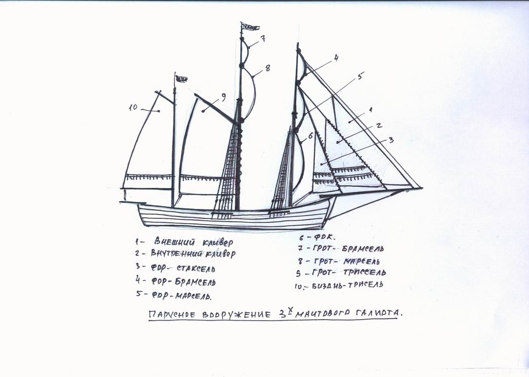 Re: Как выглядит парусное вооружение трехмачтового галиота?