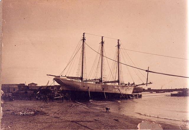 это шхуна Carmen Flore, скорее всего перед спуском.