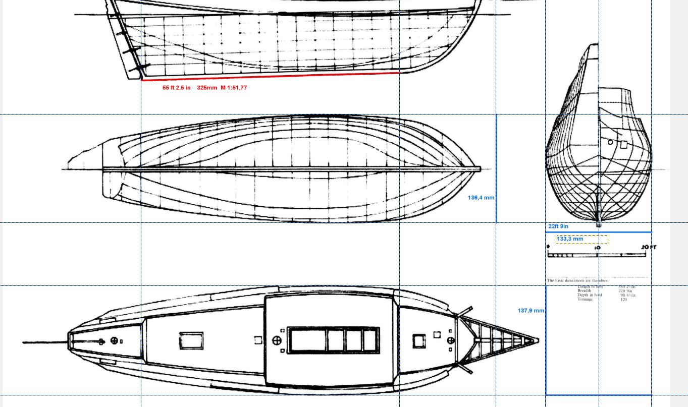 длина по килю 55.25ft.