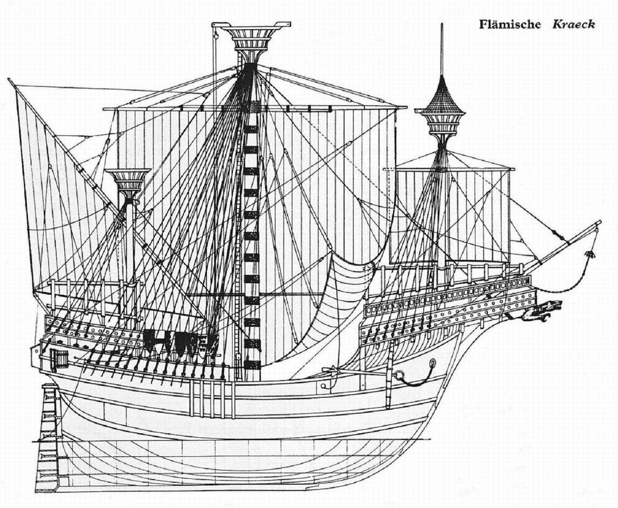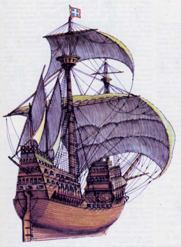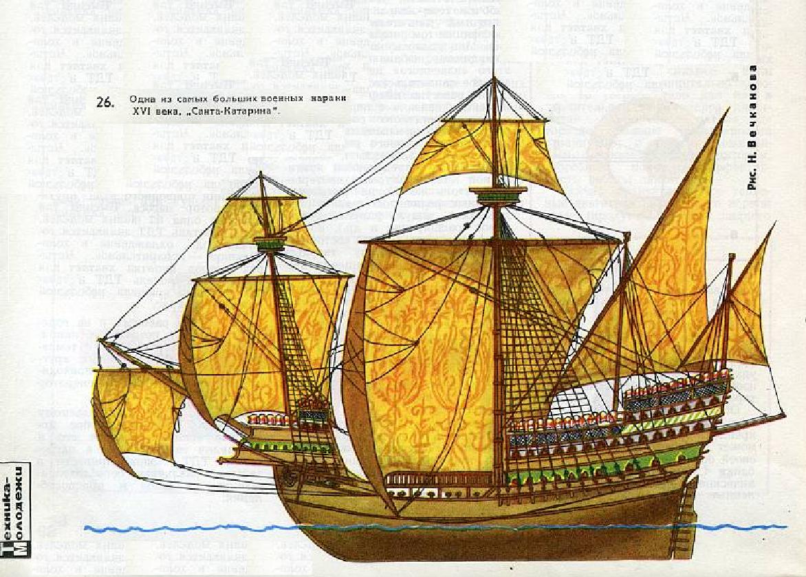 В 1520 г. португальский военный флот включил в свой состав эту огромную боевую каракку. Парусник изображен на картине, хранящейся ныне в Национальном военно-морском музее в Гринвиче. Каракка имела две мачты с прямым парусным вооружением: высокую грот-мачту в центре и фок-мачту спереди, почти у самого форштевня. Имеется также и вторая мачта с латинским парусным вооружением, именовавшаяся «бонавентура», равно как и марсель на фок-мачте. Кормовая надстройка, занимавшая пространство от грот-мачты до кормы, имеет три уровня: квартердек, полуют и кормовой мостик. Баковая надстройка значительно выдвинута вперед за пределы носовой палубы и имеет две расположенные друг над другом артиллерийские батареи. Из-за своей численности и высокого расположения над палубой орудия квартердека и полубака не имели больших калибров. В сущности, это были крупные мушкеты и мелкие пушки, установленные на планшире. Только посреди судна на палубе находились лафетные орудия, стрелявшие ядрами солидного веса. Корма закругленная, квартердек над ней плоский и имеет пушечные порты, и соответственно, пушки, чтобы вести огонь назад. Отметим также, чтов бортах нет пушечных портов поскольку на палубе располагалась всего одна батарея орудий, которые стреляли через проемы в ограждении. Известно, что на судне находилось сто сорок орудий, но мы не знаем, как они подразделялись по типам. Приблизительные размеры судна: длина 124,5-131 фут (38-40 м), ширина по палубе 39-46 футов (12-14 м), высота главной палубы 18-19,5 фута (5,5-6 м), осадка 13-14,5 фута (4-4,5 м).