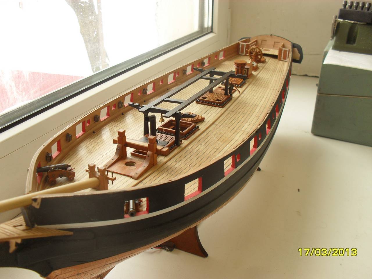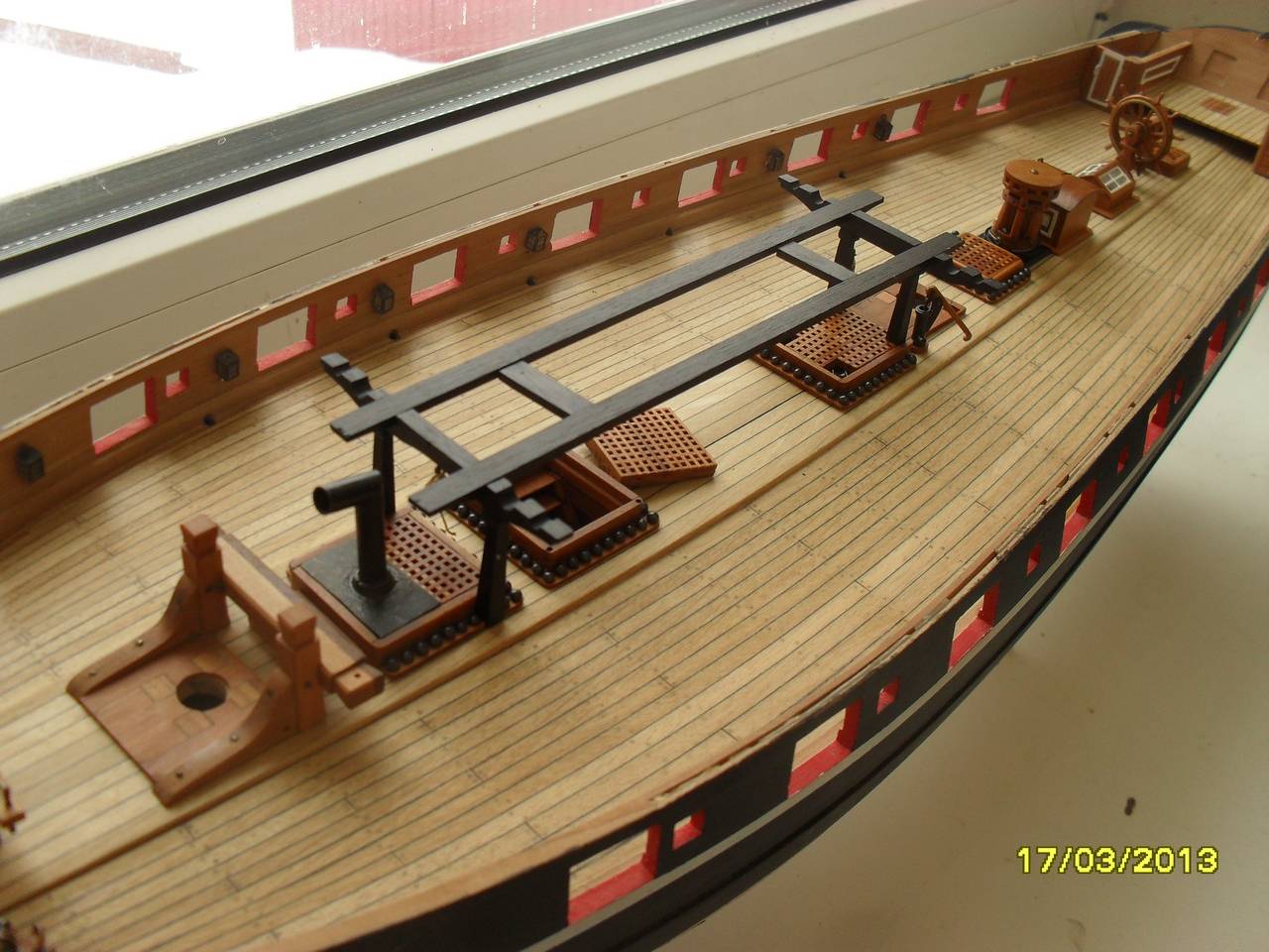 Рымы - готовая фототравленка, покупал давно здесь http://www.shipwrightshop.com/shop/cont ... gs_01.html (83505 Brass Eyelets, 250pk. Sold in packs of 250, these eyelets are etched from 0.3mm brass, the eye has an internal diameter of 0.7mm and measures 7mm in length). Пишут - 0,3мм латунь, у меня после чернения получилось 0.2мм. Из этих же обрезков сделаны чеки в колесах. Из этих же рымов сделаю гаки талей (ножку рыма загну крючком).
