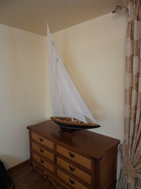 Проект "Эндевор" окончен. Осталось взять острые ножнички и подрезать свисающие концы такелажа и опционально сделать гламурные бухточки на палубе. Модель установлена на свое место. Критический взгляд выявляет необходимость повесить на стену портуланы в рамочке. Но это порешаем попозже.