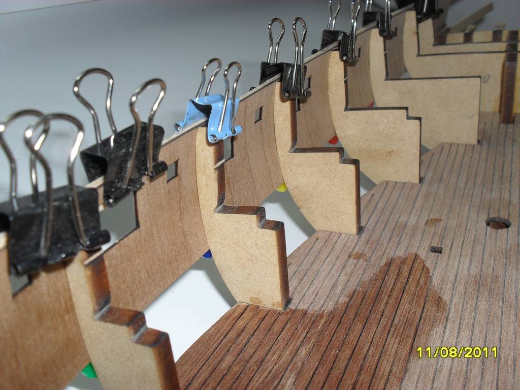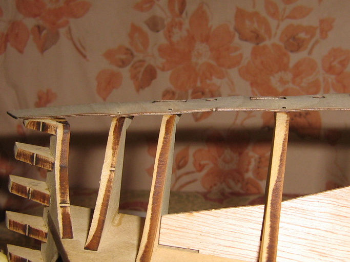 Именно так! Поверхность фальшборта д.б. не плоская, а двойной кривизны. Но хуже всего, прорезанные порты (пушечные и весельные) ослабляют поверхность, и она в этих местах гнется по другому, из-за чего внешний край борта идет волнами.