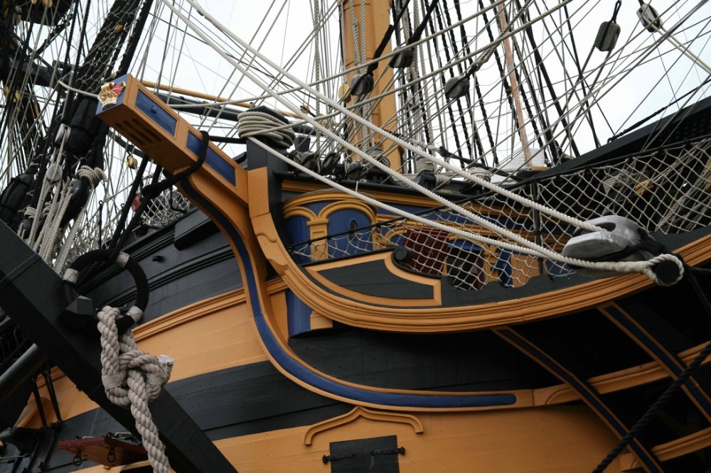 А теперь самое интересное. Огромное количество моделистов ошибаются на одной важной детали. Кто-то купился на современные чертежи, например, МакКей рисовал эти ошибки...кто-то что-то не так рассмотрел, кто-то просто не понял суть... Короче. Очень много моделистов ставит подкову грепа и петли руля ПОВЕРХ медной обшивки. В чём логика, непонятно. Получается, что работники верфей после килевания (кренгования) корабля выламывали эти довольно массивные важные силовые элементы, чтобы просунуть под них медные листы, а потом всё умудрялись как-то поставить на место… Петли переставить на новое место, гвозди в новое место вбить… А через год опять всё сломать, потому что медная обшивка приходила в негодность в среднем за год.