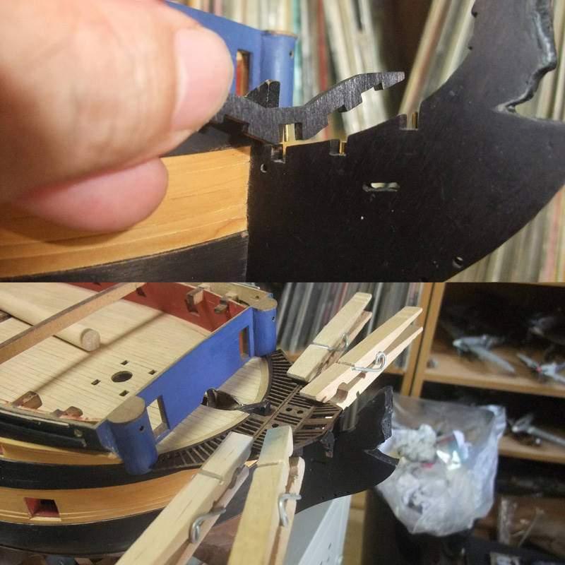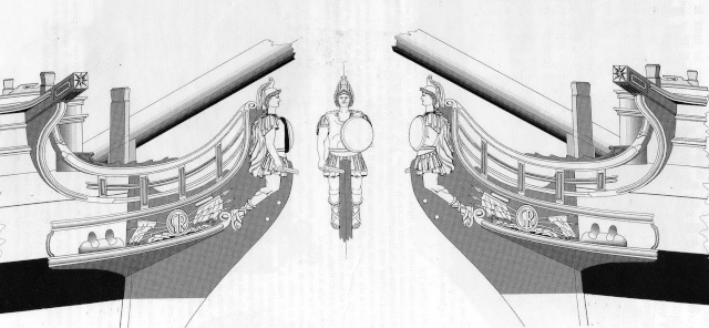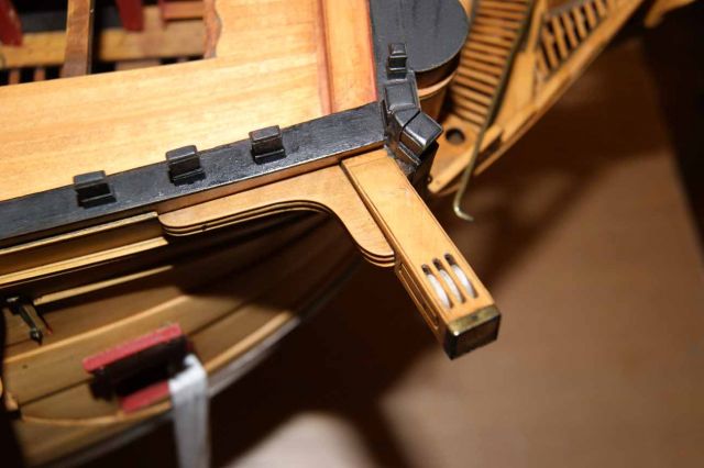 И сразу крупная ошибка Амати. Гед-тимберсы стоят на своих местах, но их должно быть не три пары, а четыре. Потеряны самые последние гед-тимберсы, которые крепятся не к княвдигеду, а к корпусу корабля.