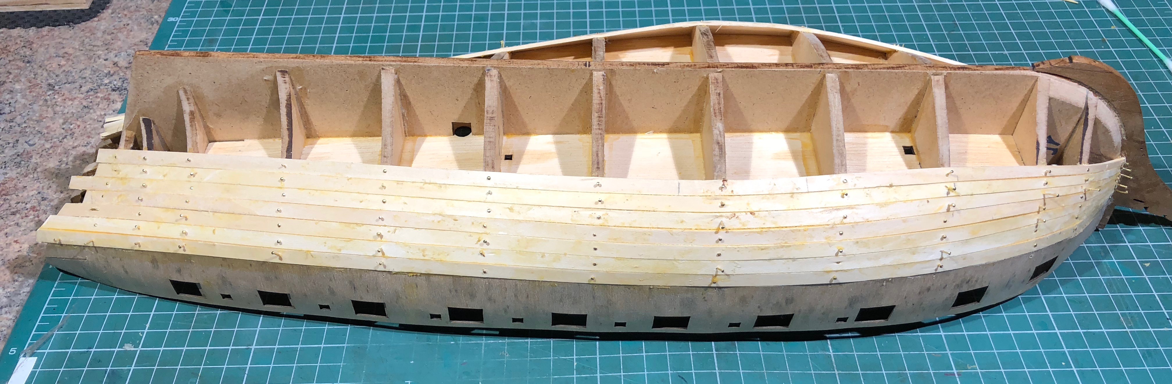 По сборке шпангоутов все проверил и перепроверил- все ок. Если было бы что ни так, не стала бы нижняя палуба.