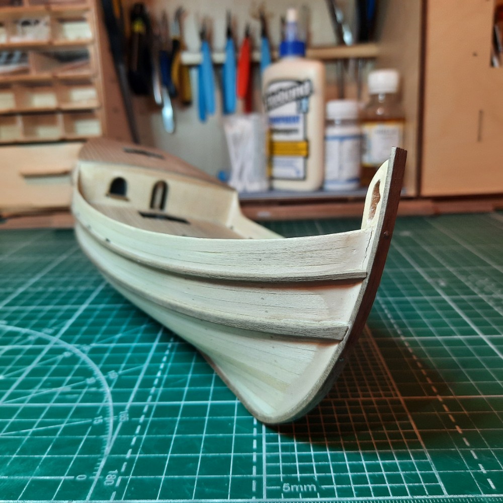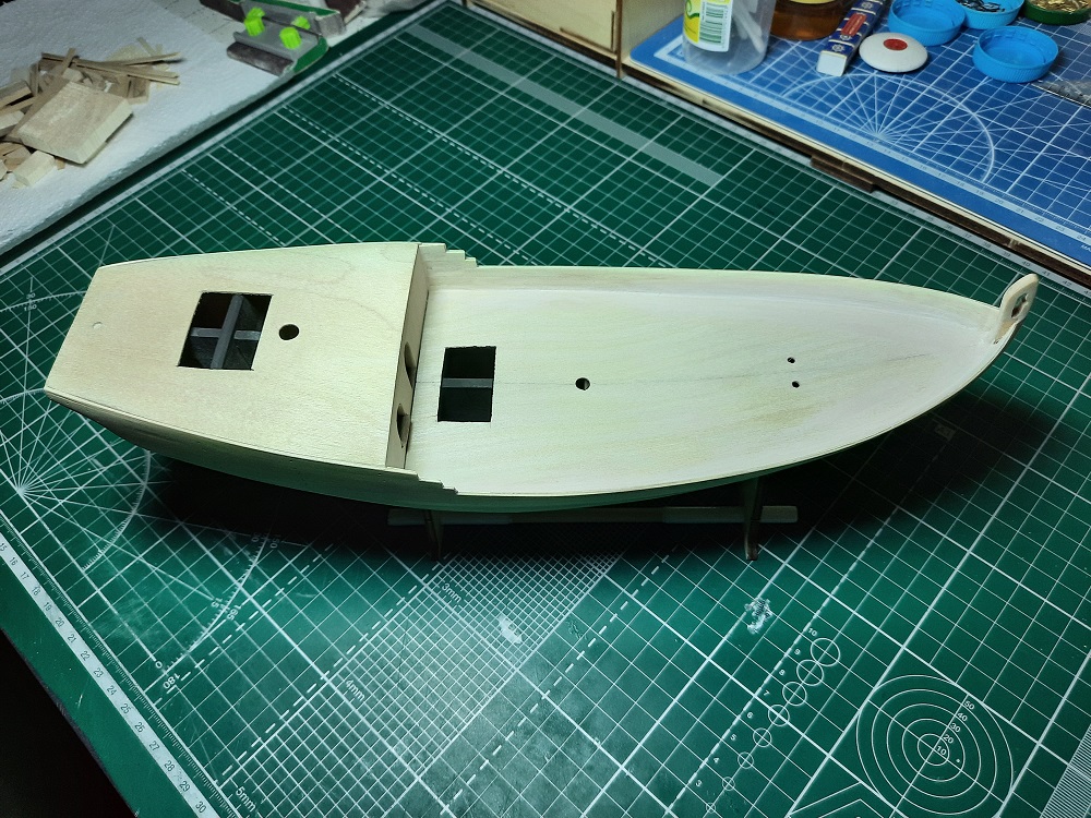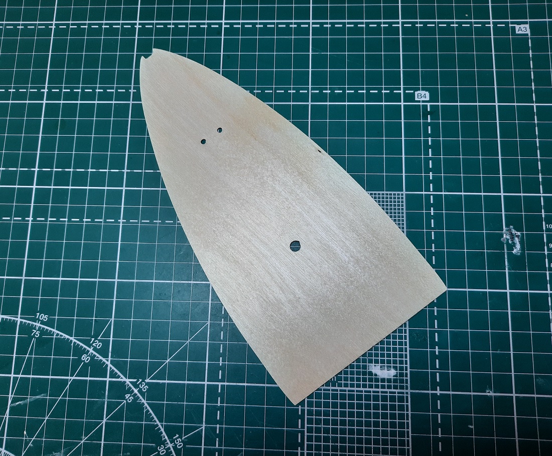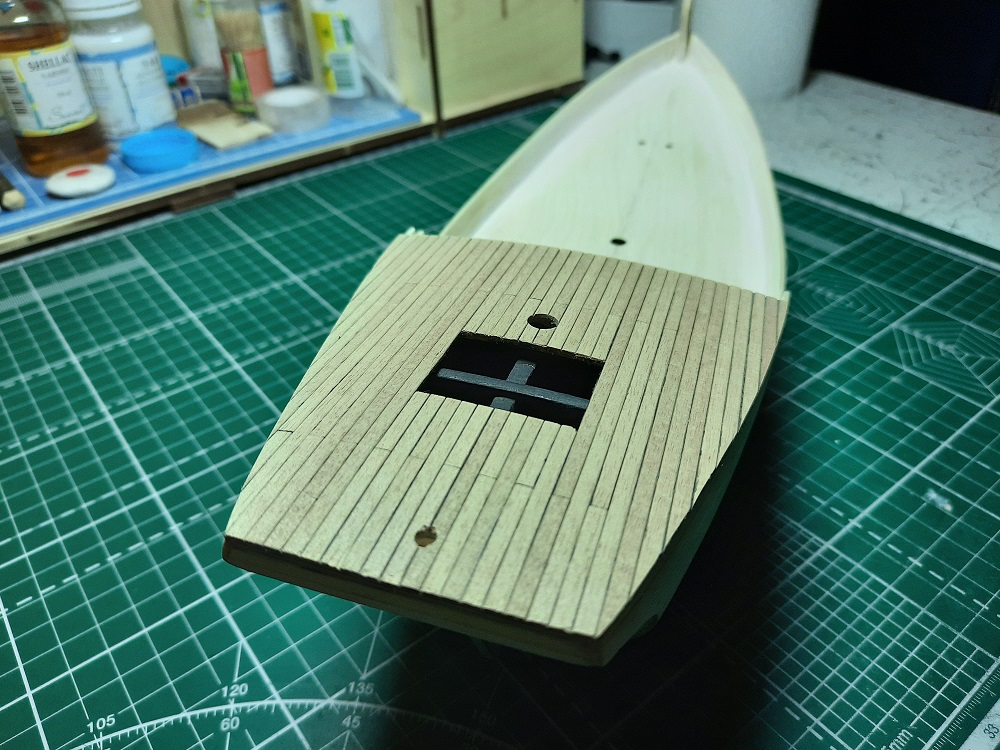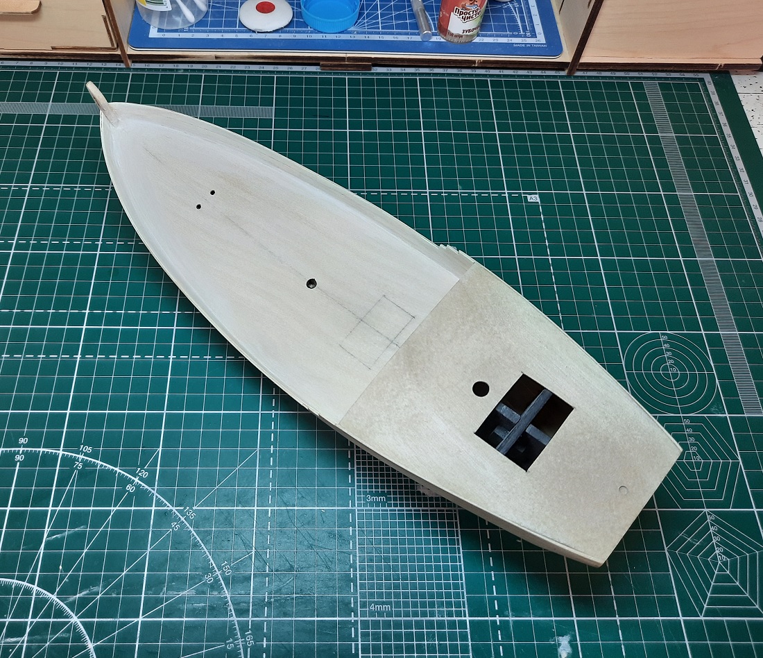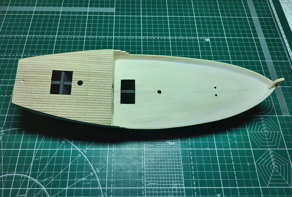 Основную палубу из фанеры 1 мм толщины пришлось немного уменьшить как по длине, так и по ширине.