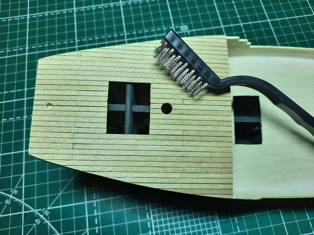 Затем обработал получившуюся поверхность палубы вот такой металлической щёткой.