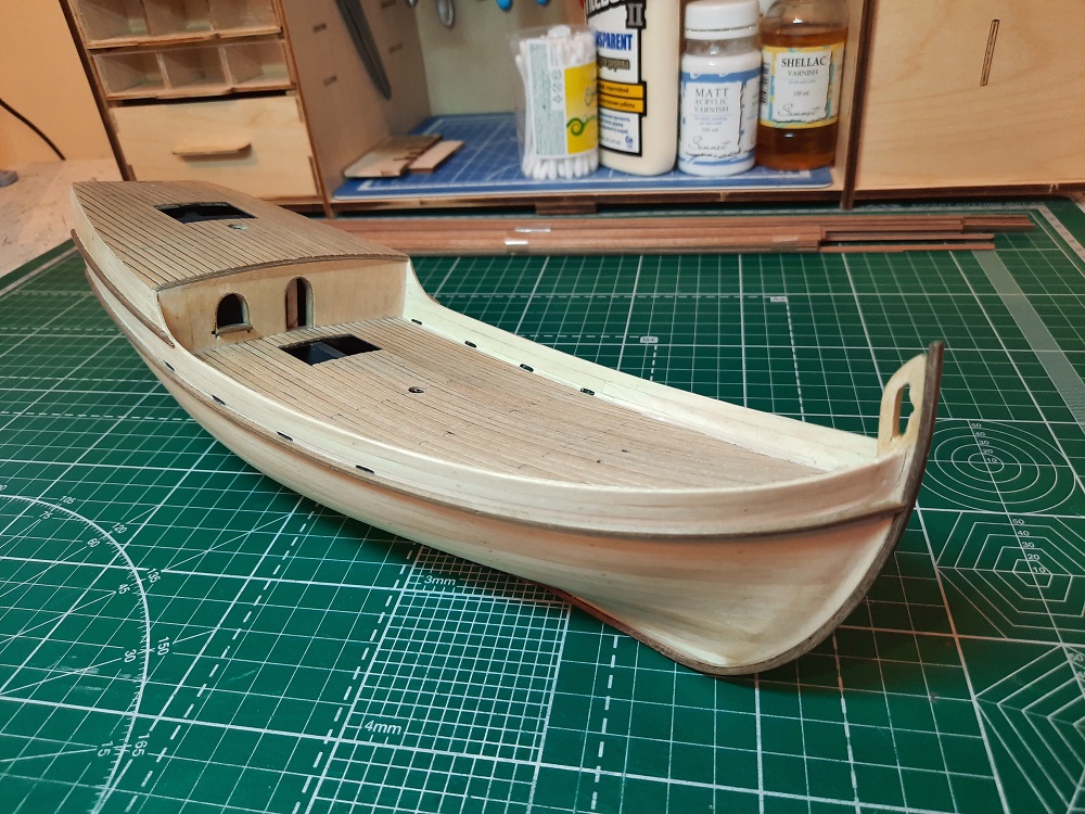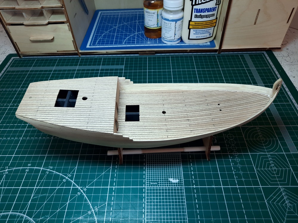 Палубу пока ничем не покрывал, планирую в дальнейшем обработать тиковым маслом.
