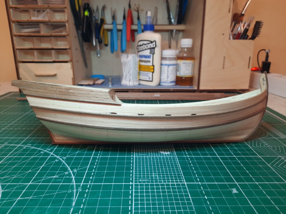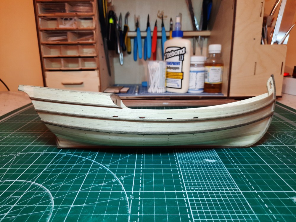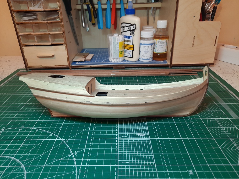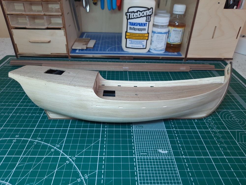 Закончил основной этап черновой обшивки корпуса кораблика. Делал не спеша и вдумчиво. В итоге хотелось бы отметить следующие моменты.