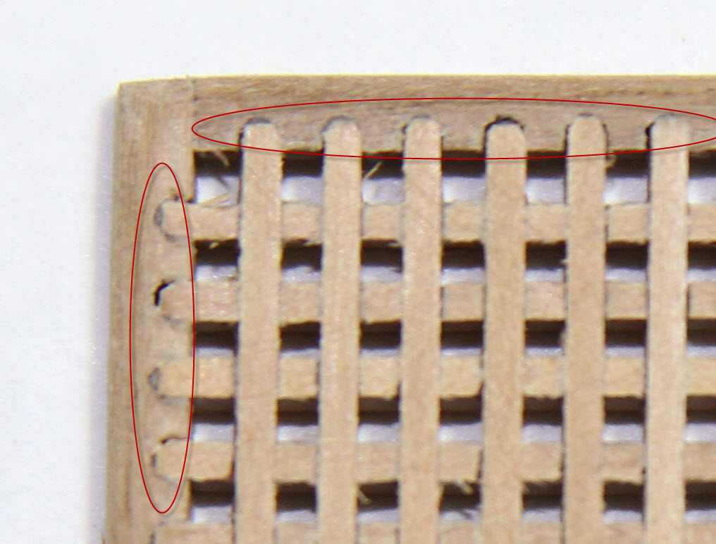 Вот что получилось:Даже вдохновленный опытом Петра решил сделать врезку концов планок в рамку. При изготовлении этих решеток обнаружил следующие недостатки: