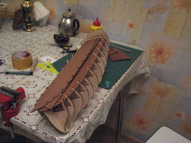 Причины выбора. Сын загрелся от рекламы С-Д-Б. Почитал я про него, просмотрел на приложенный к первому номеру журнал. Понял не нравится, с учетом конечной стоимости вообще отпала охота с ним свзываться. В итоге на совете семьи выделили денег на красивую модель. Интересна она была еще и тем, что совсем мало кто ее собирает, значит у меня будет этакий эксклюзив. Историческая достоверность пока мало волнует. Просто кораблик понравился. Еще одна причина по которой хотелось попробовать кит, это посмотреть на подбор материалов (орех, таганика т.д) а также на изготовленные лафеты, пушки блоки и прочую корабельную утварь. Был проездом в Москве, для этой цели хотел посетить музей с моделями, но консьерж в гостинице так и не смогла мне подсказать, можно ли такой музей найти в Москве или нет. Москивичи, есть у вас музей с моделями?