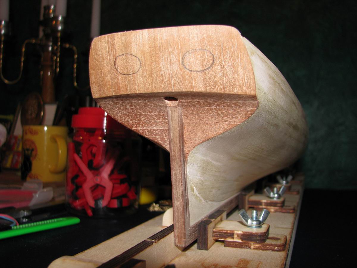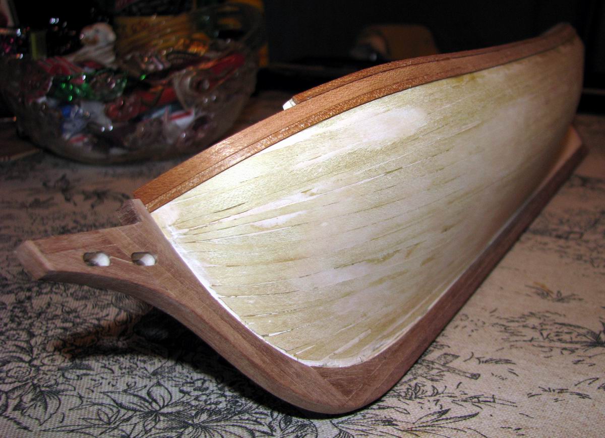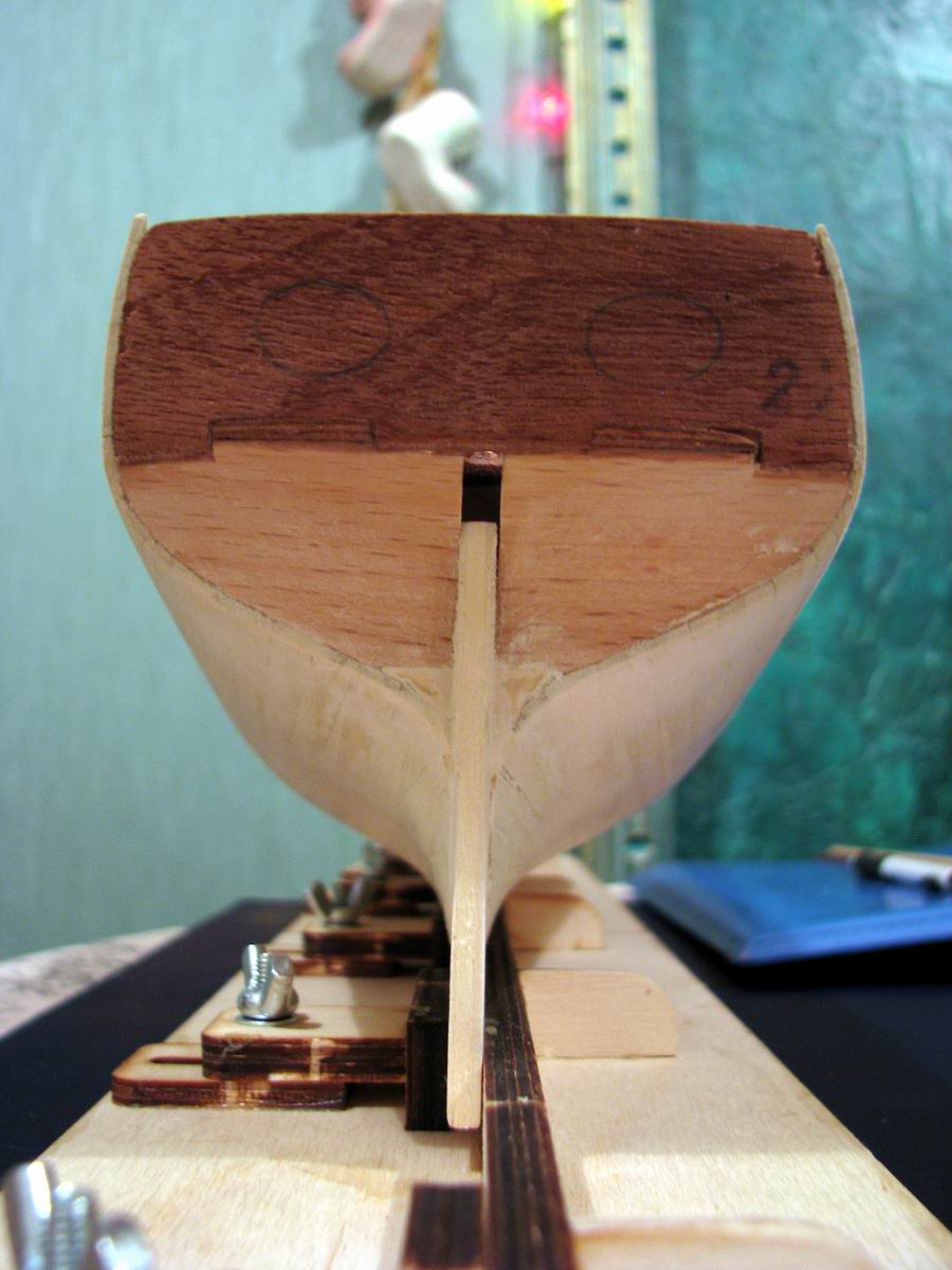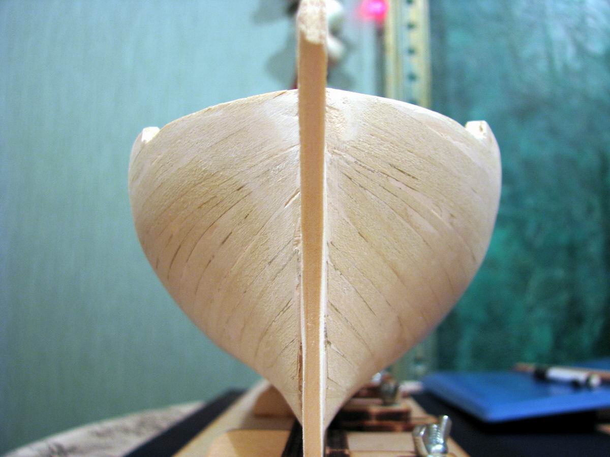 3. Имитировать килевой набор и сделать еще зазор в носовой части корпуса для того, чтобы в этот зазор заходили планки чистовой обшивки.
