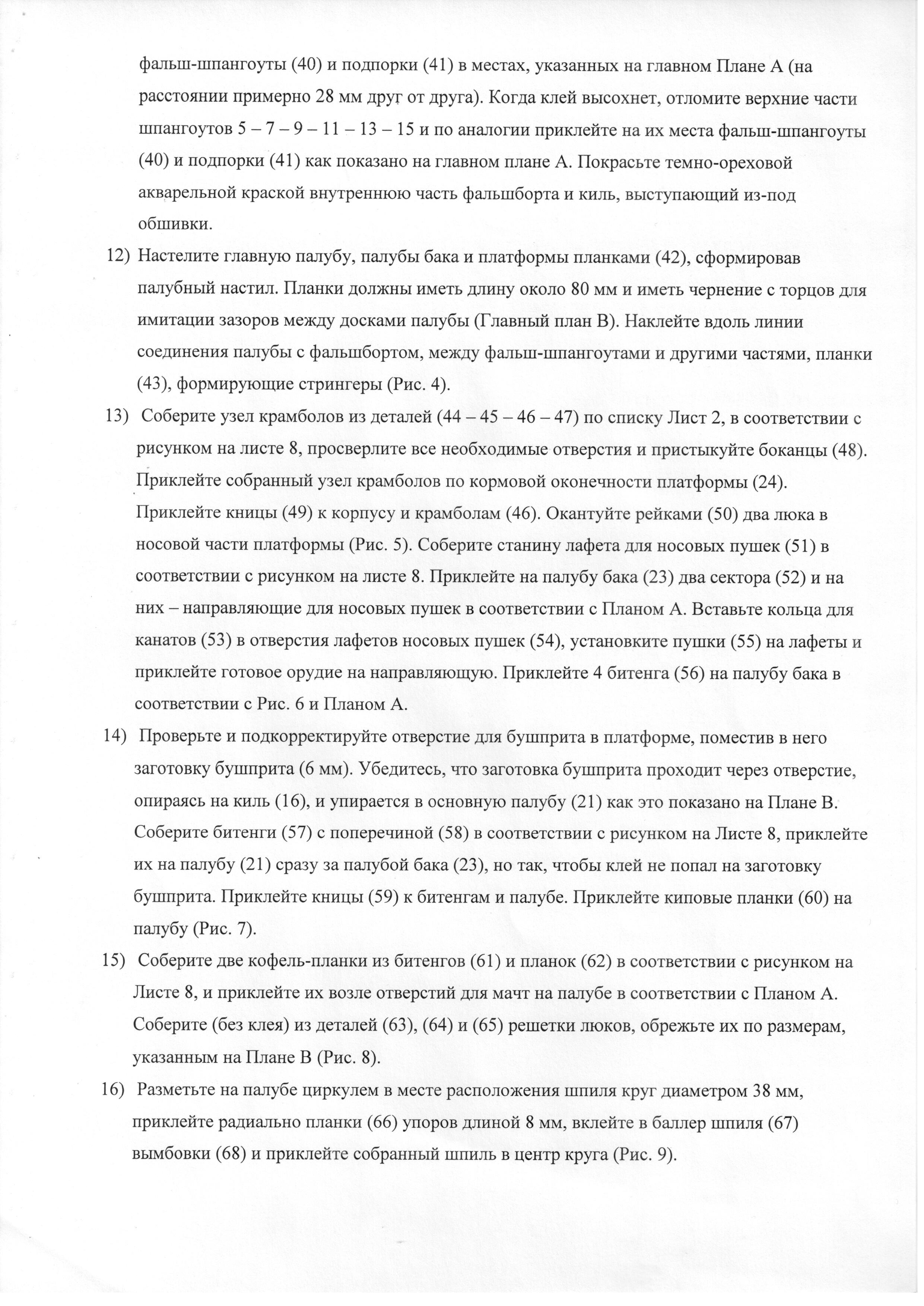 Ниже - мой перевод инструкции (пока без рангоута и такелажа). Рангоут и такелаж не переводил. Мне кажется, там и так все ясно...