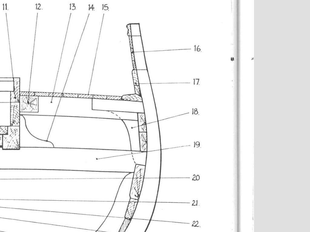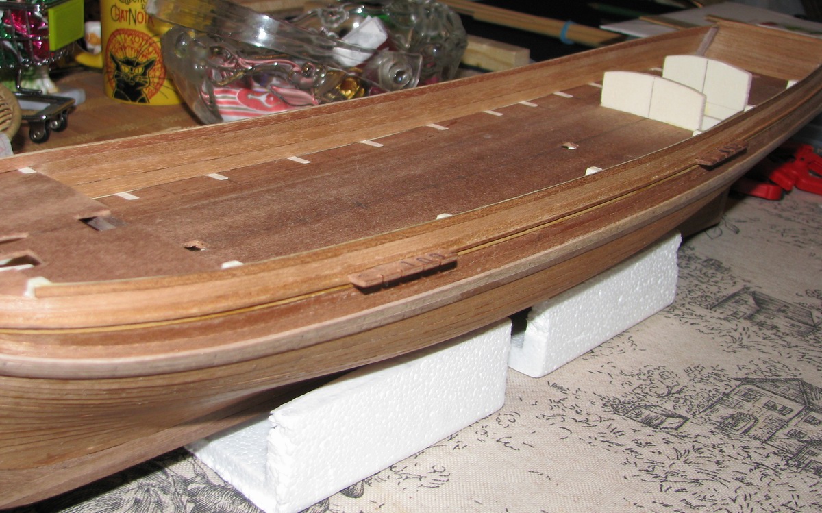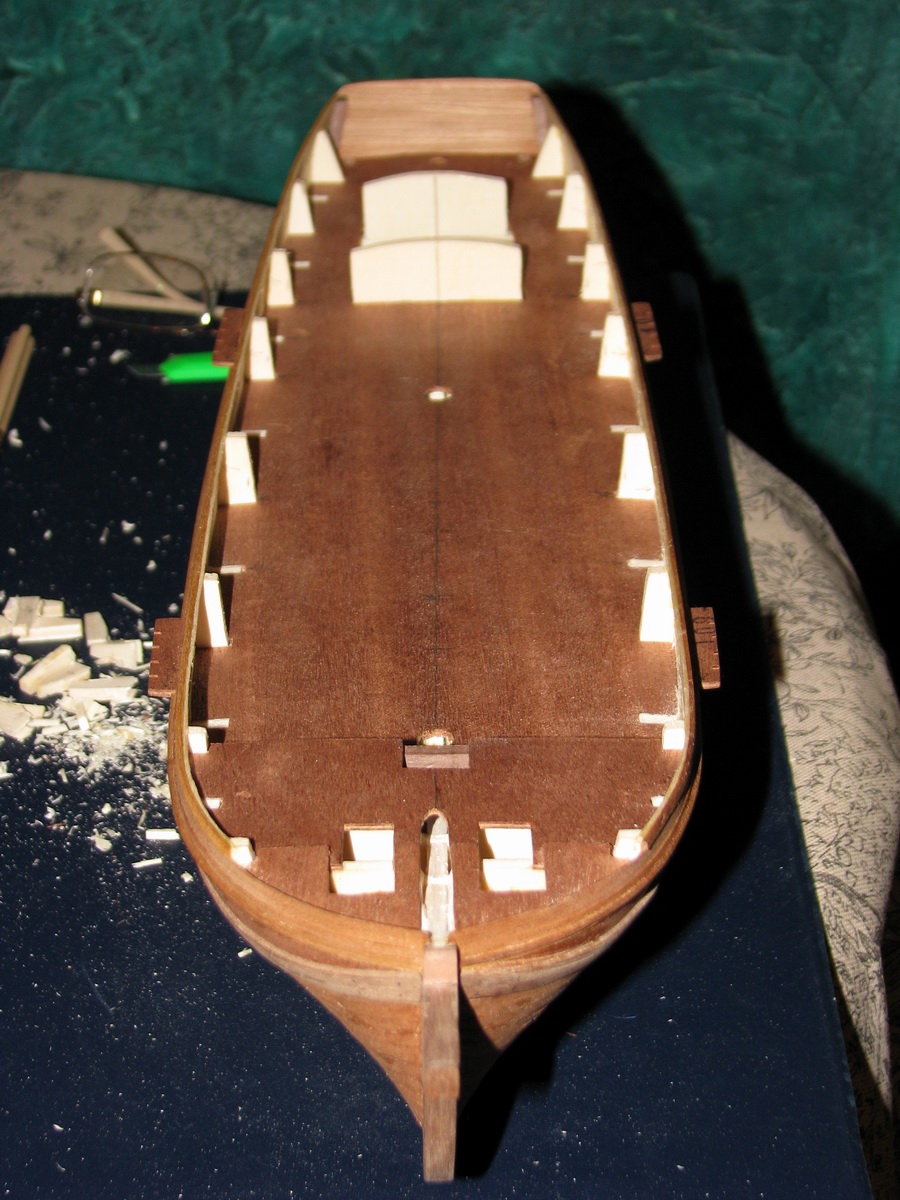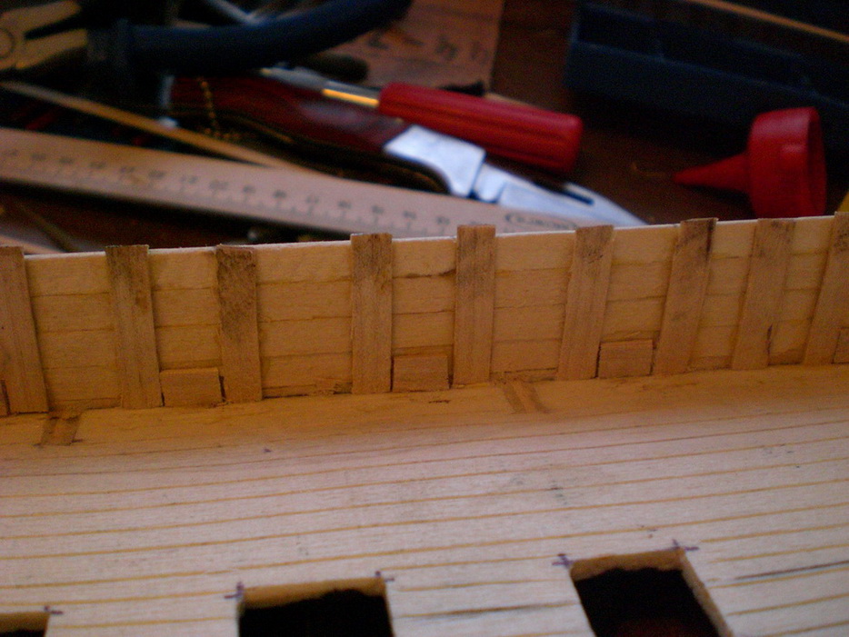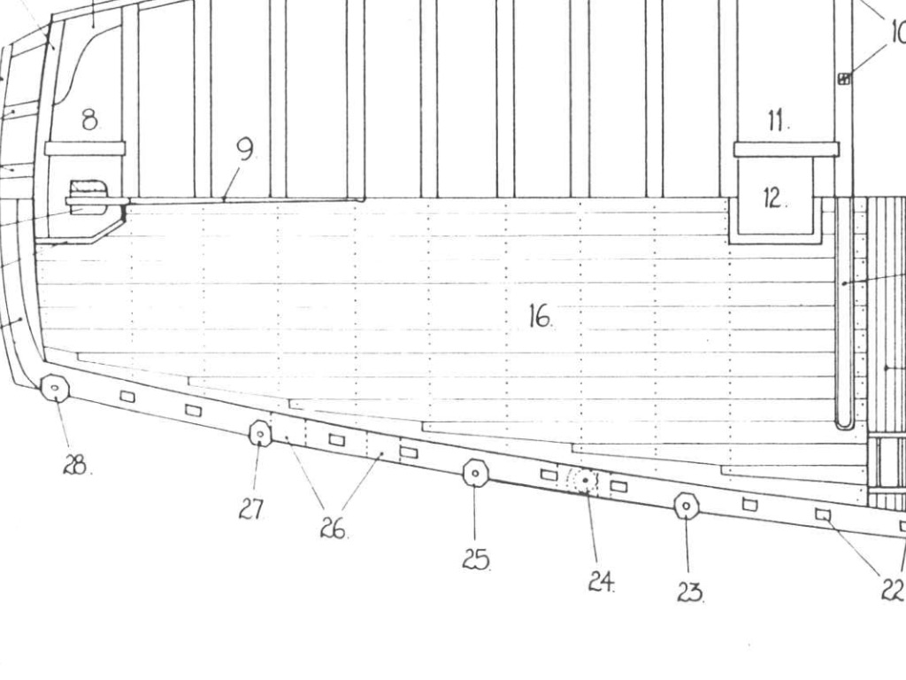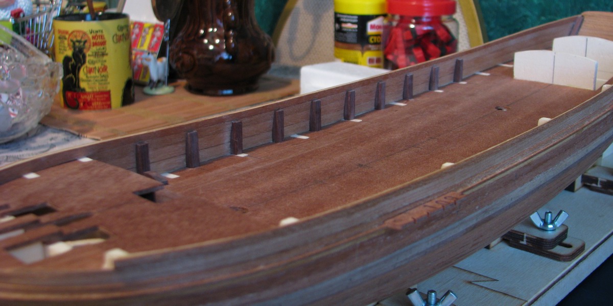 Насчет досок настила - подумаю. Дело в том, что Мамоли дает материала в обрез, так что на изогнутые доски может не хватить. Ватервейс на этом судне не виден, так как вдоль борта на стыке фальшборта с палубой по всему периметру по чертежу идет планка 2х2.