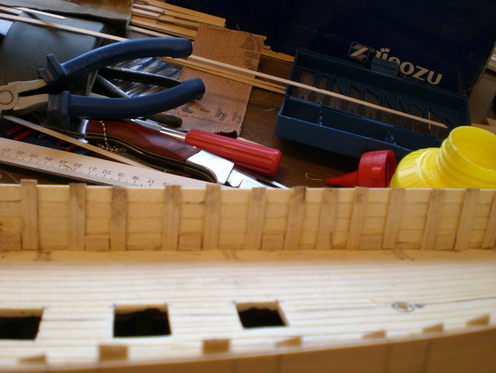 Так я про выламывание борта вроде и не говорил.Нарастите фальщборт изнутри кусочками.После выломать надо будет верхние части шпангоутов.затем оклеить начисто изнутри.