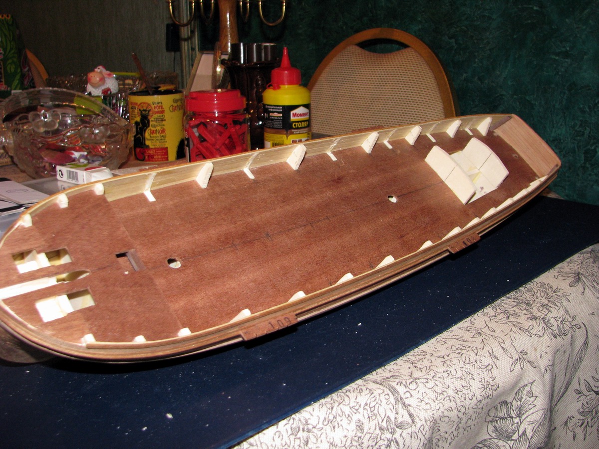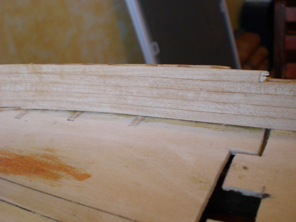 Deep! Черновой осталось только 2 рейки. Посмотрю, может быть буду выламывать не весь борт целиком, а кусками по 1/3 и оклеивать изнутри не по всей длине сразу. А как палубу - с перехлестом.