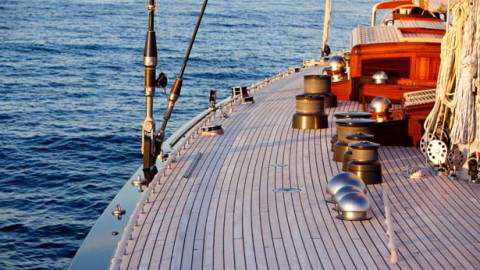 Дело в том, что эта планка даже не из того материала. палуба - светлые планки, а то, что приклеивается ПОВЕРХ палубы по борту - темный орех.