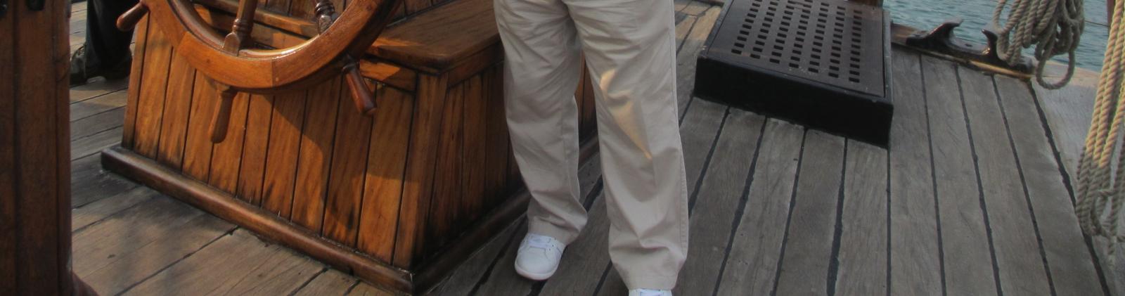 На первом фото видно: доски узкие. На втором фото видно - доски изогнуты практически по изгибу ватервейса. Видна врезка досок в ватервейс и центральную часть палубы, сделанную из более широких и толстых досок (видимо, толстые доски нужны для увеличения прочности, как карленгсы и леджесы). В обоих случаях количество стыков досок минимально.