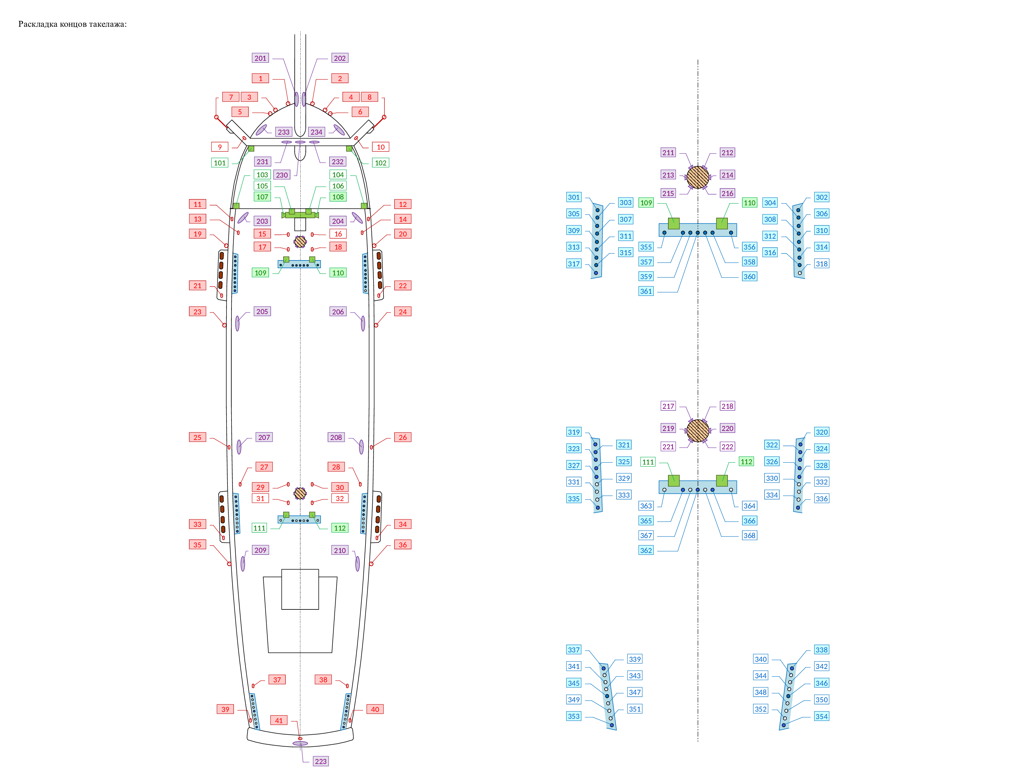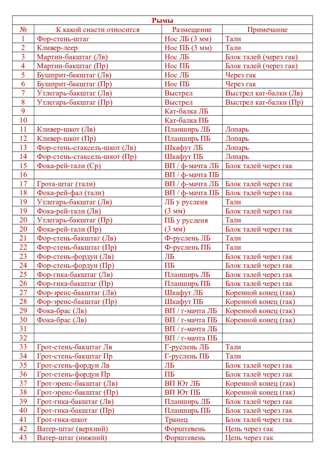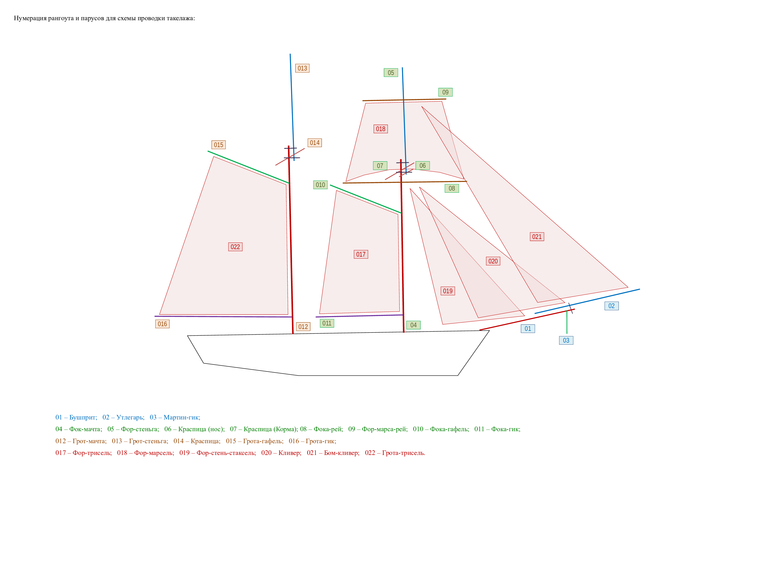 Нумерация рангоутных дерев и парусов (для схемы проводки такелажа)