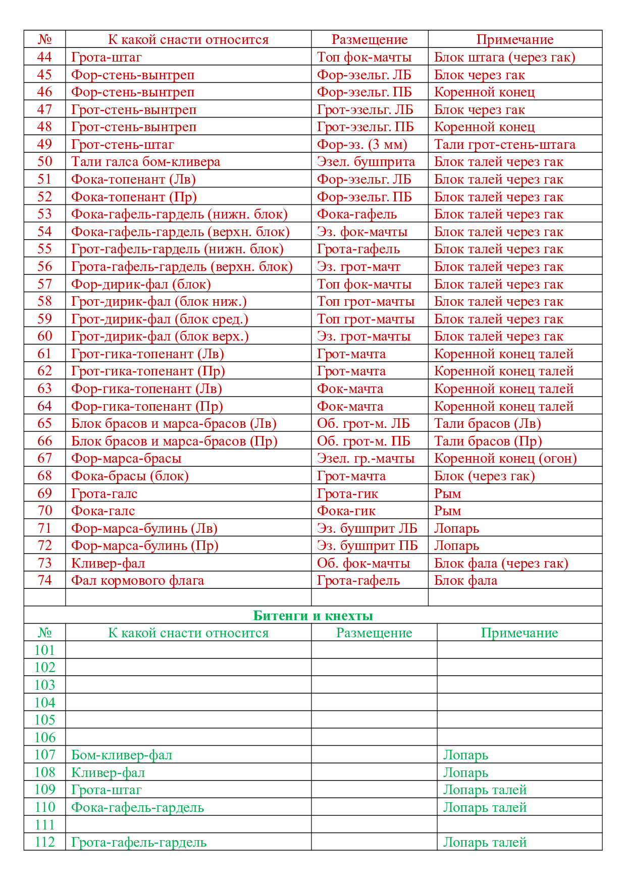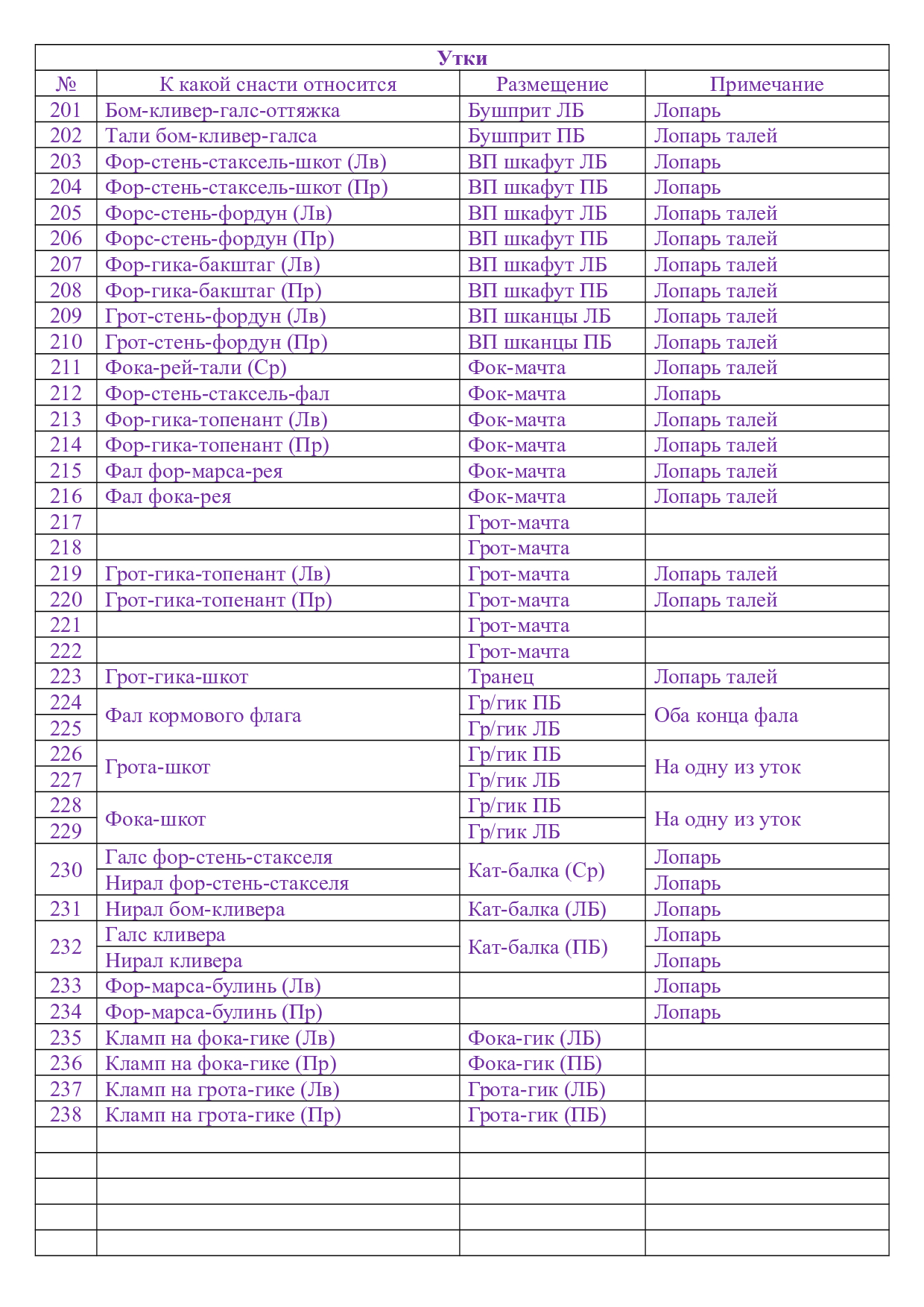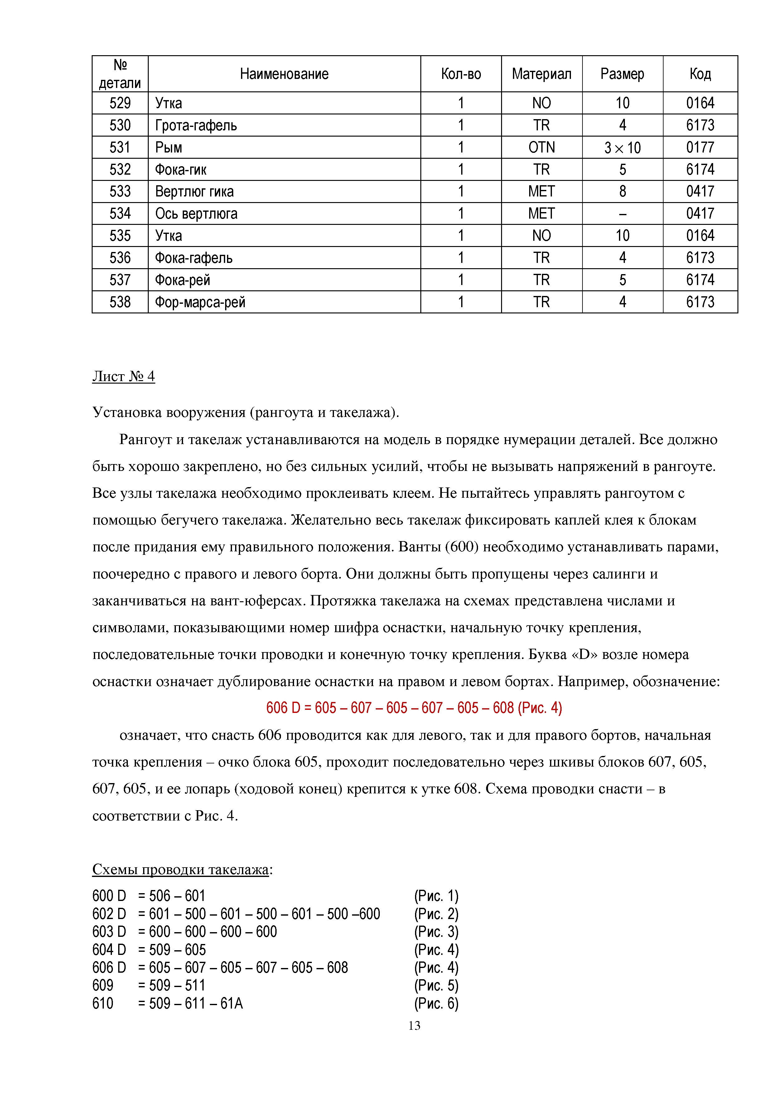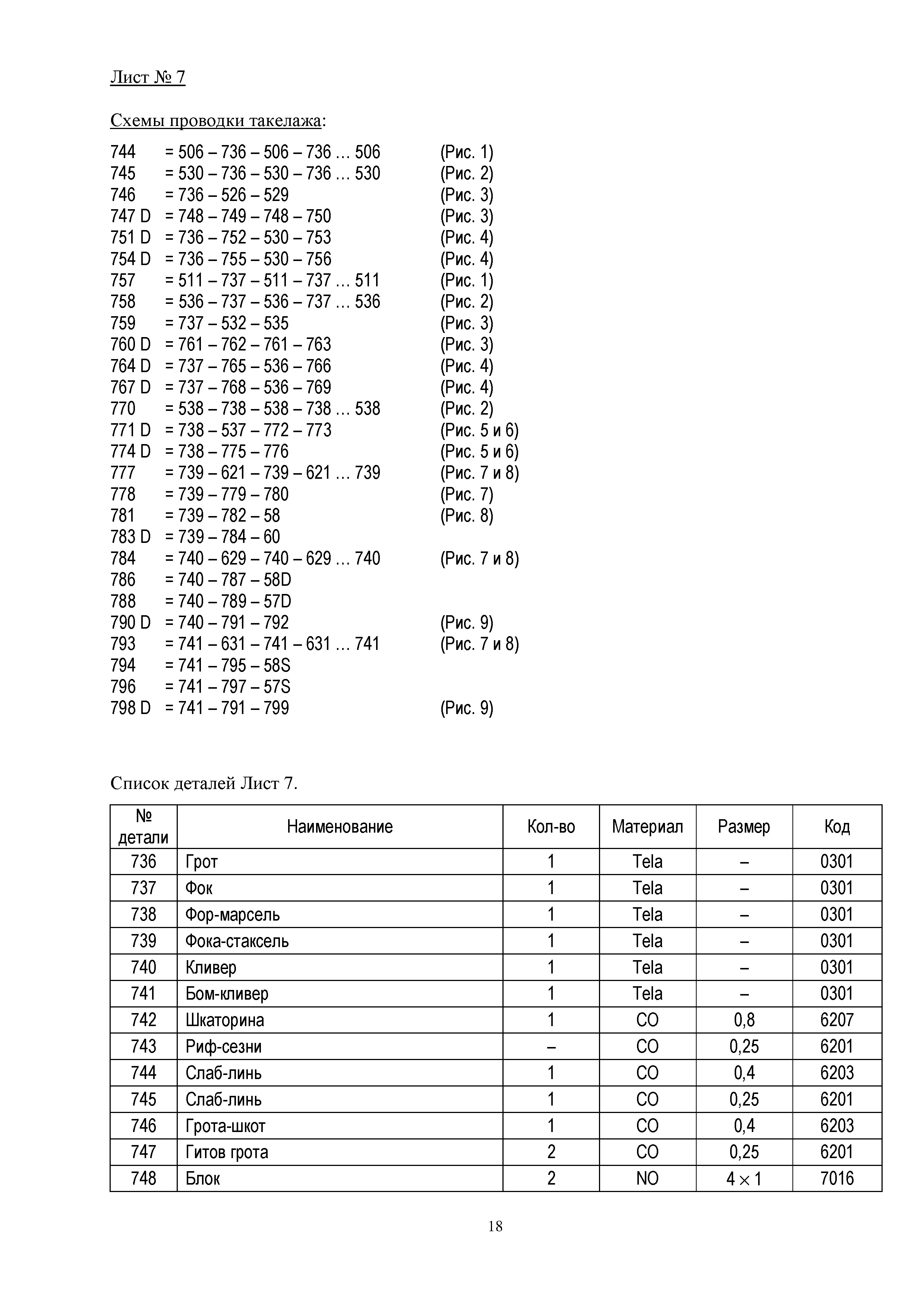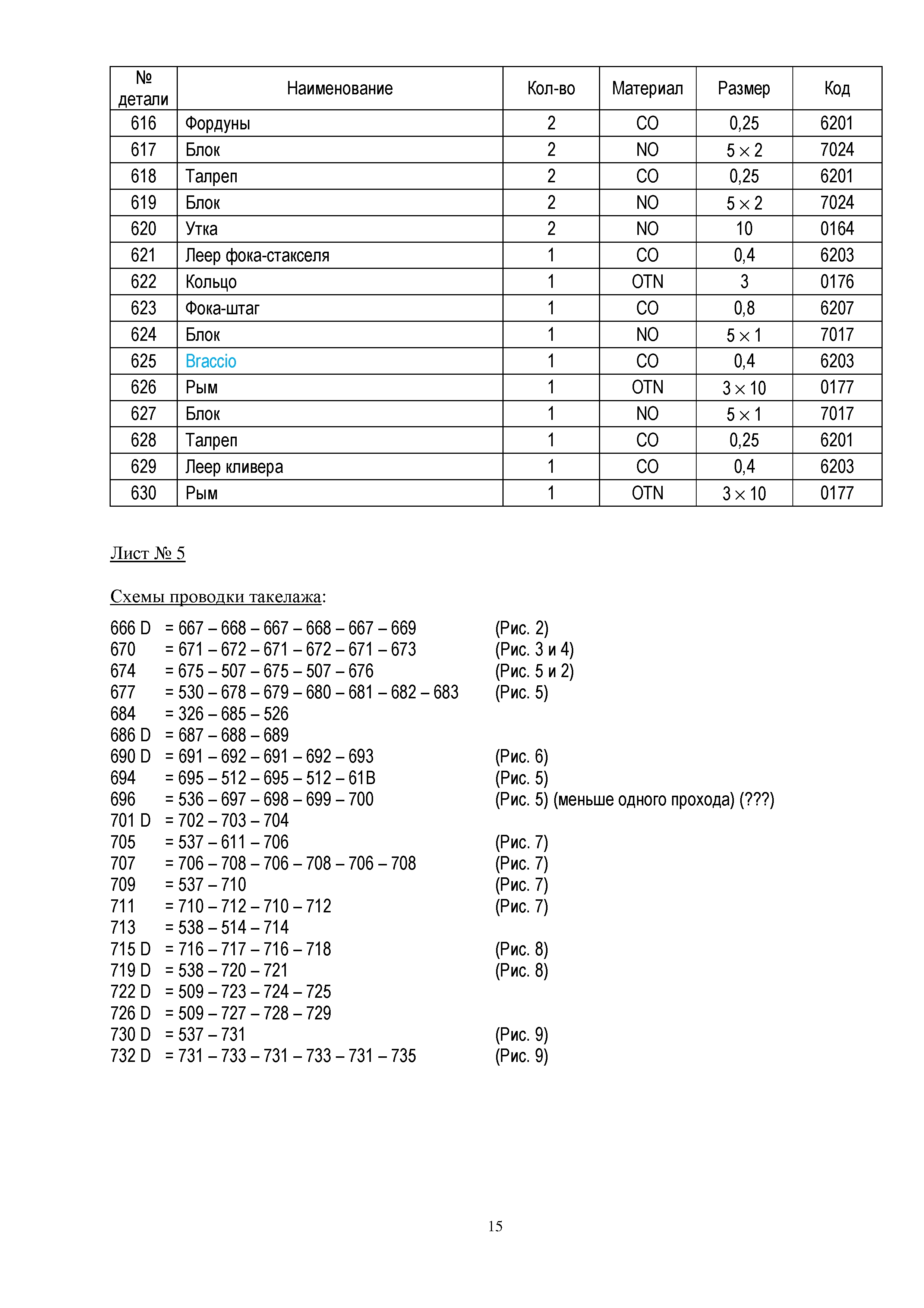 По каждой снасти расписана его проводка, а для некоторых снастей приведены рисунки типовых узлов.