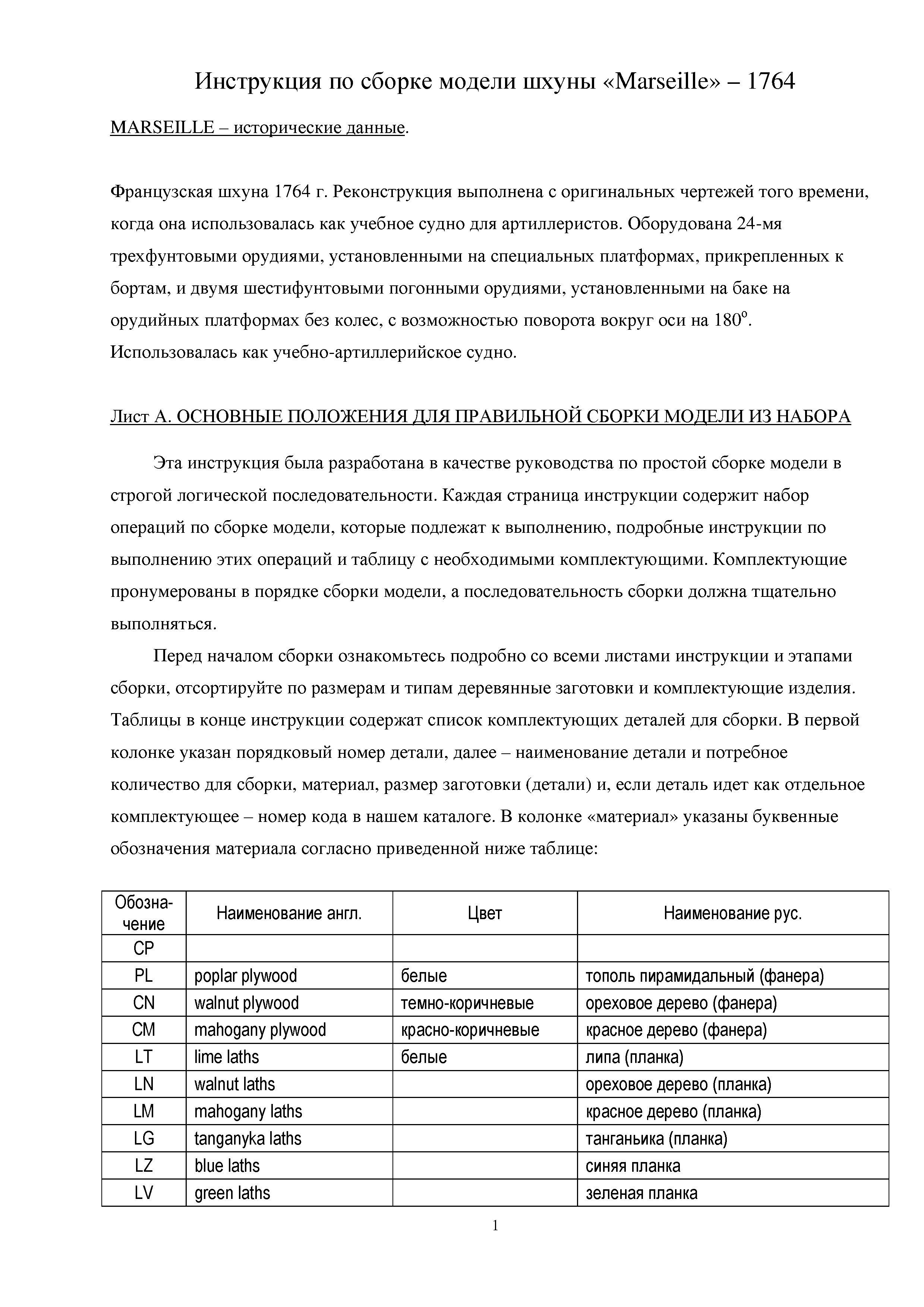 Здесь находится полный перевод инструкции по сборке шхуны Marseille от Mamoli.