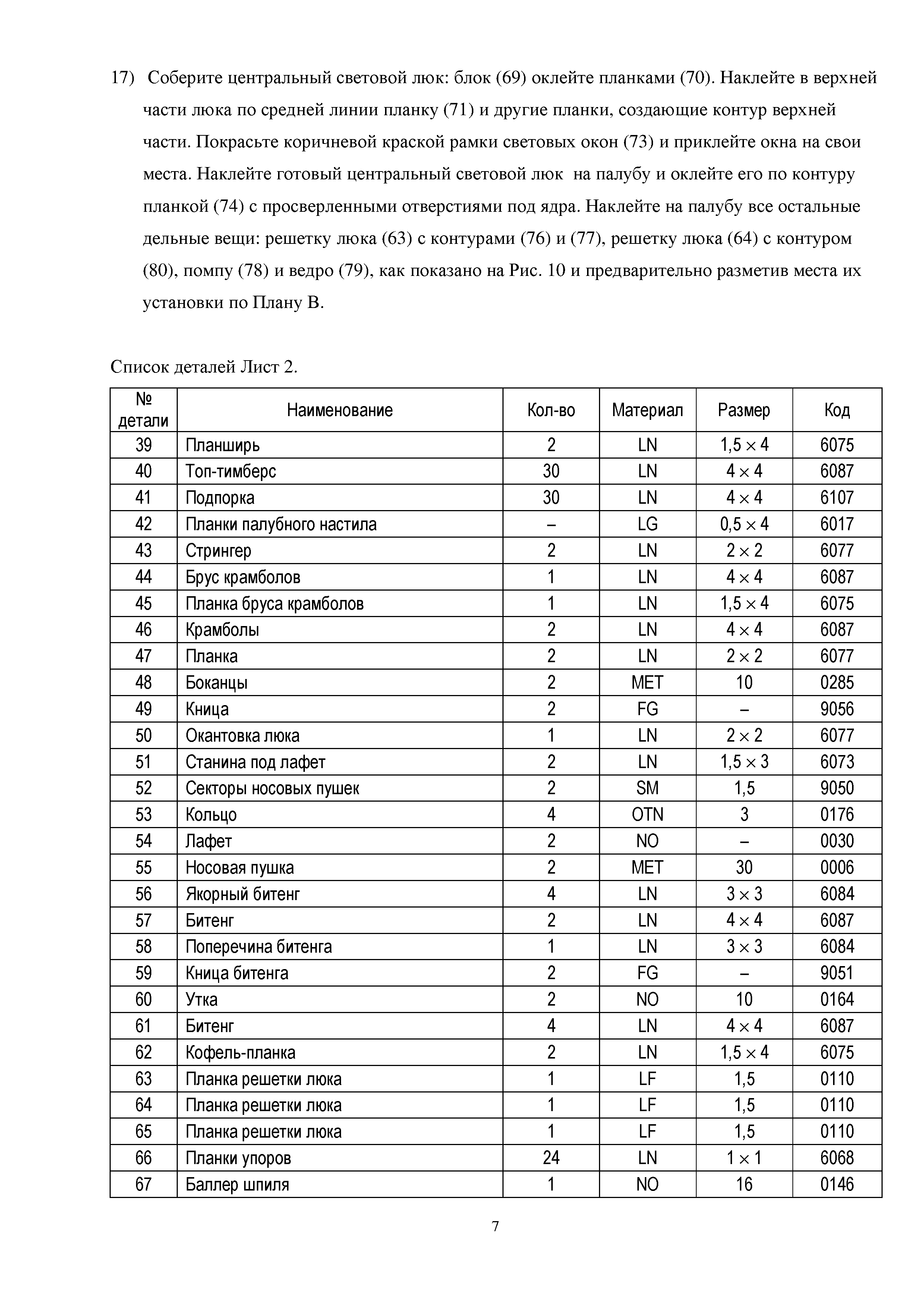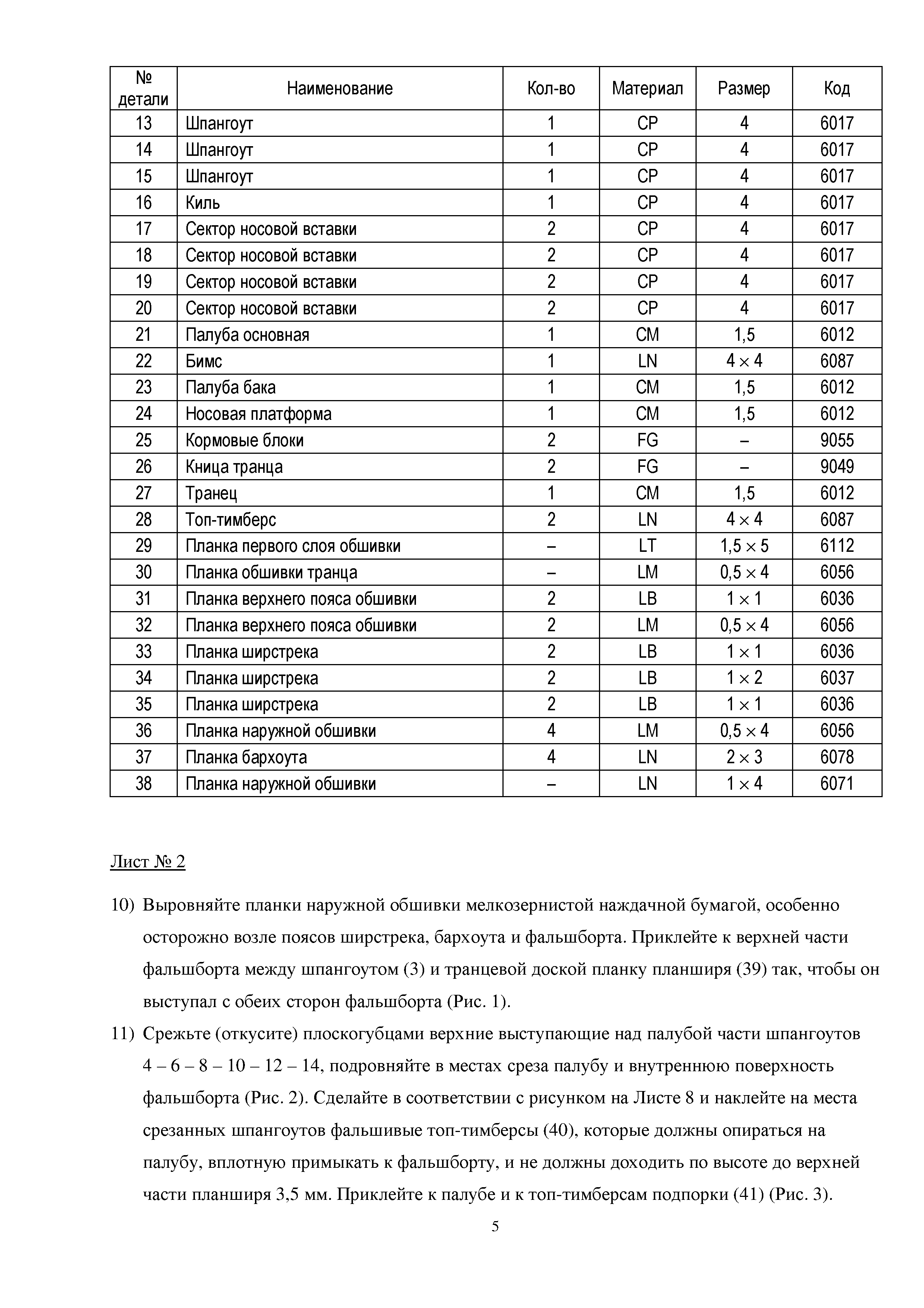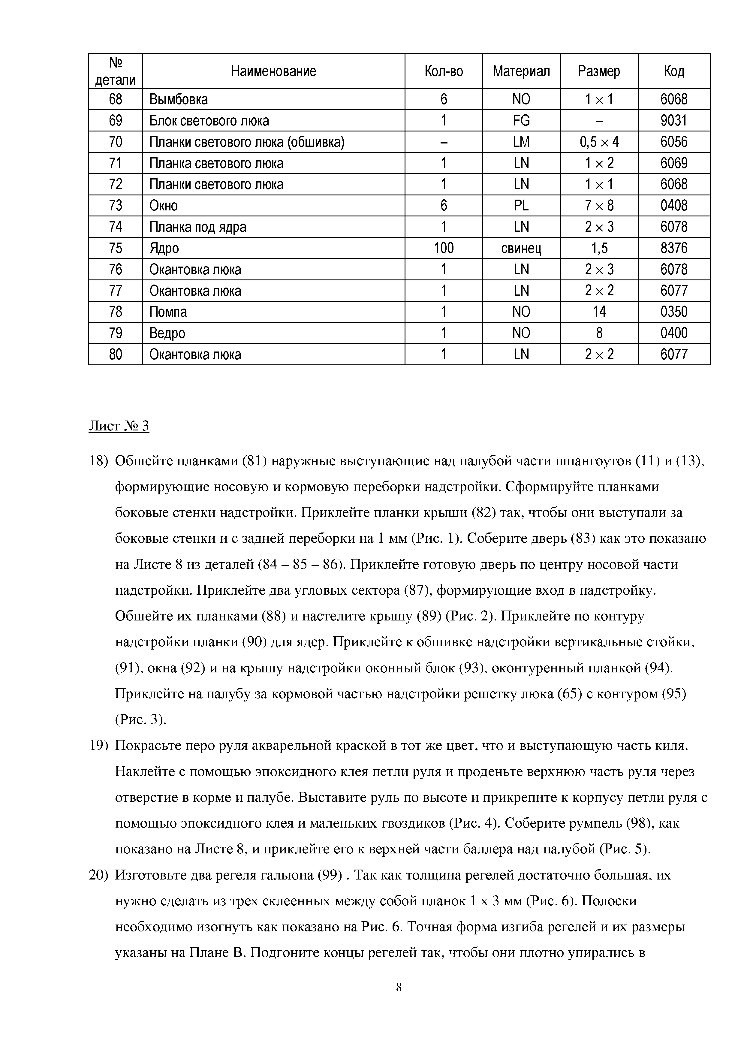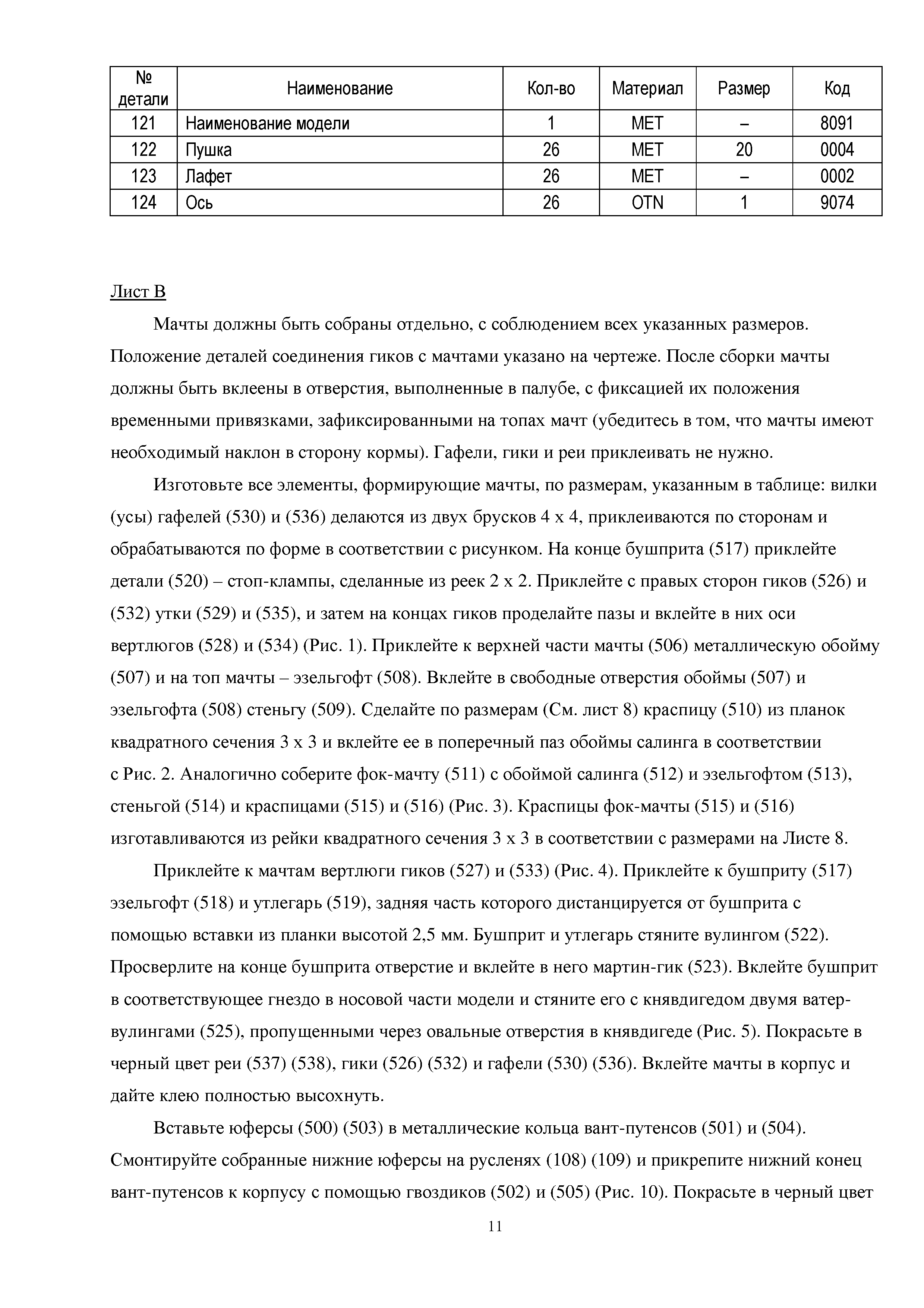 Для тех, кто хочет собрать эту шхуну "с нуля", приведены листы спецификации и чертежей.