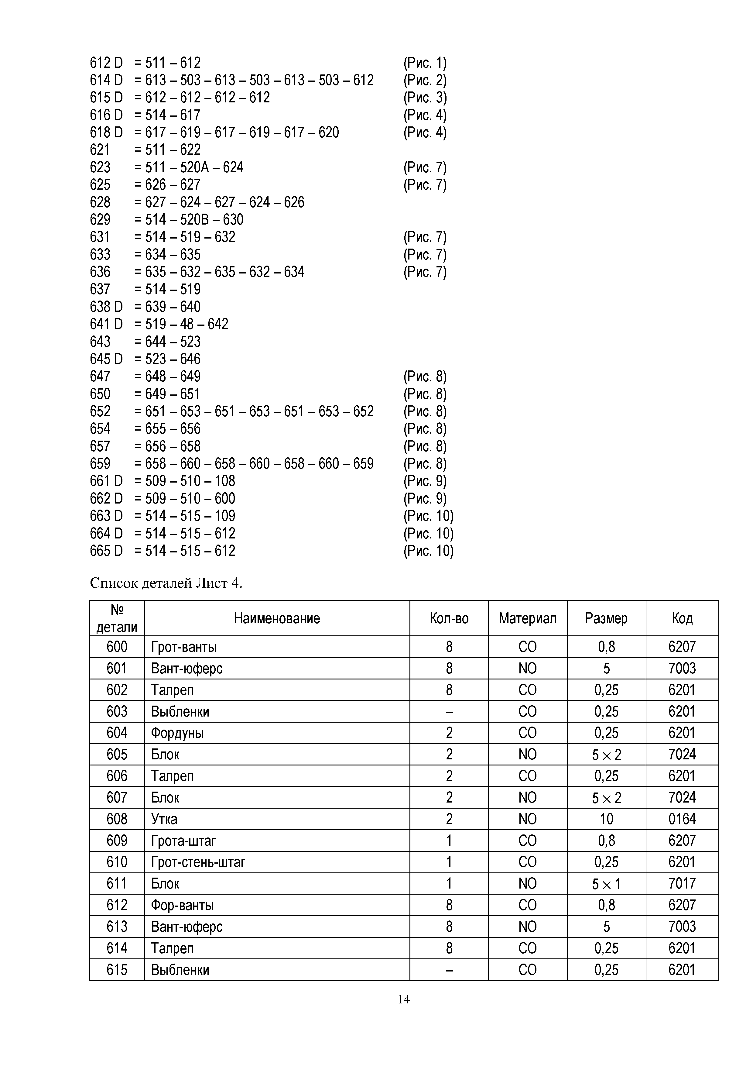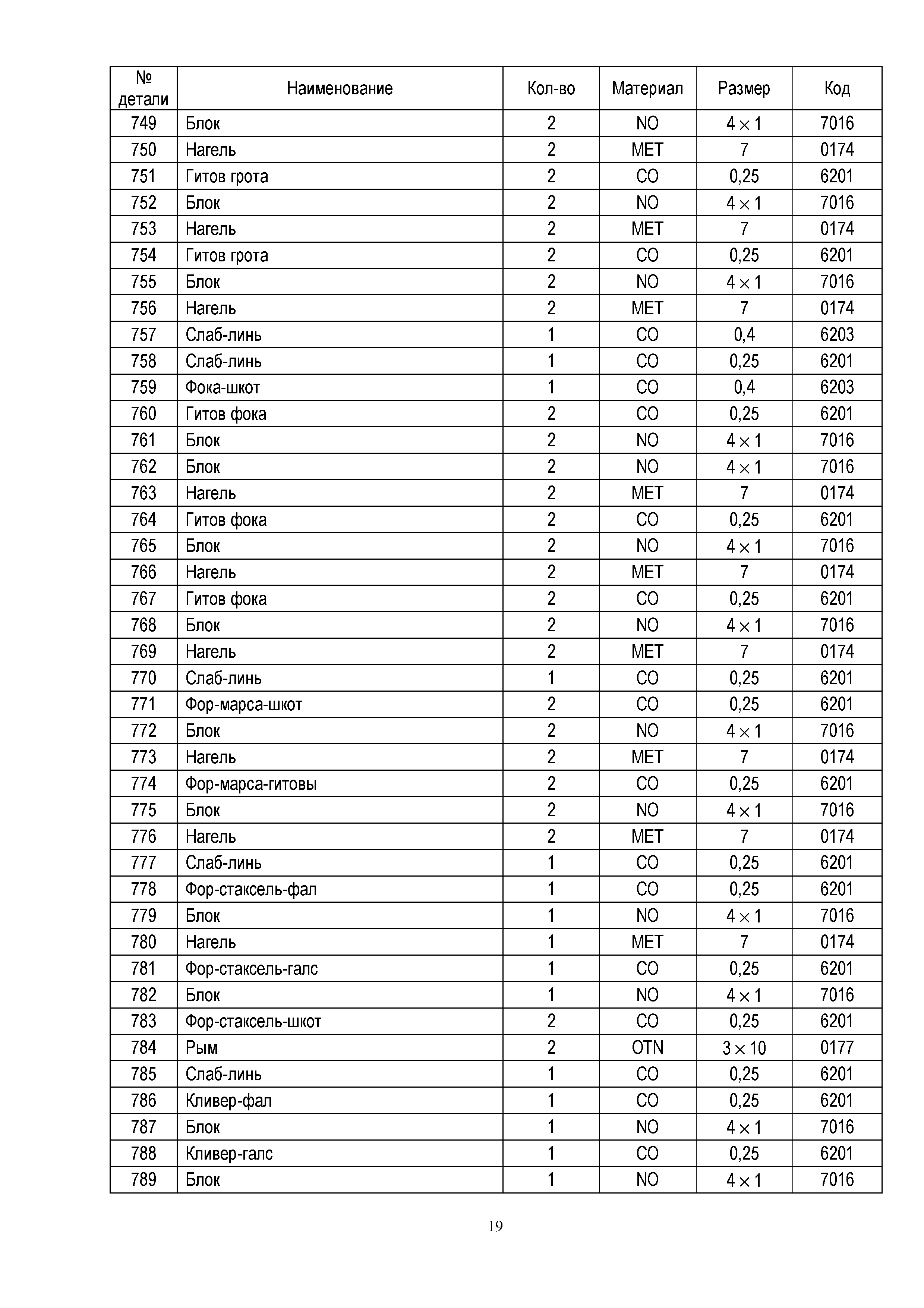 600 - 750 - снасти стоячего и бегучего такелажа.