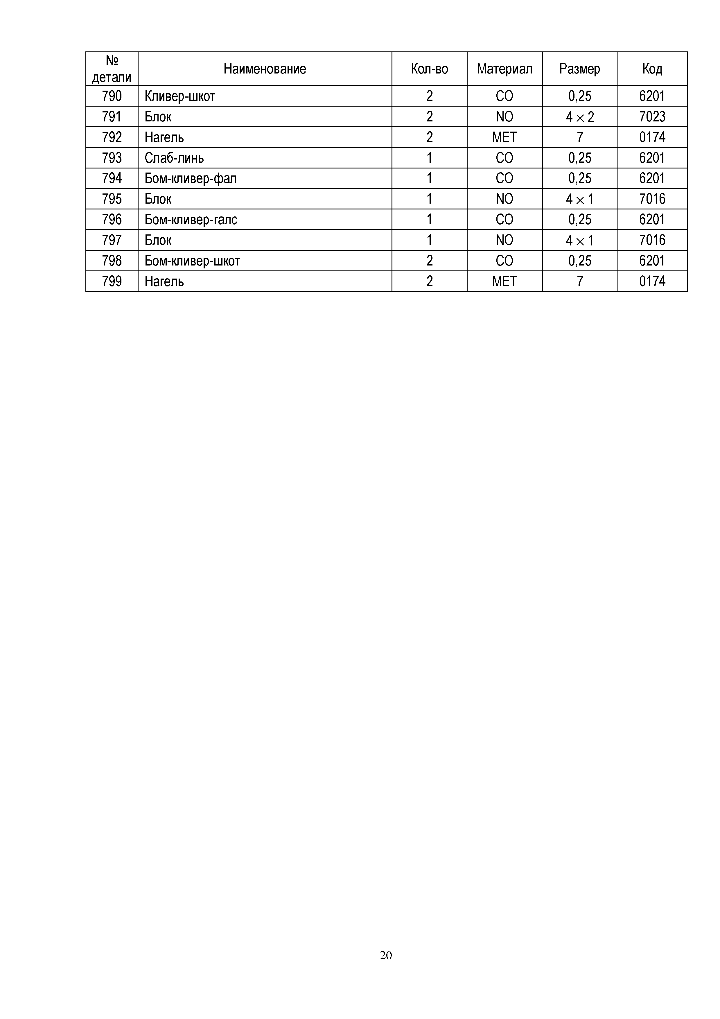 401 - 546 - блоки стоячего и бегучего такелажа (в таблице также даны размер блока, мм и число шкивов)
